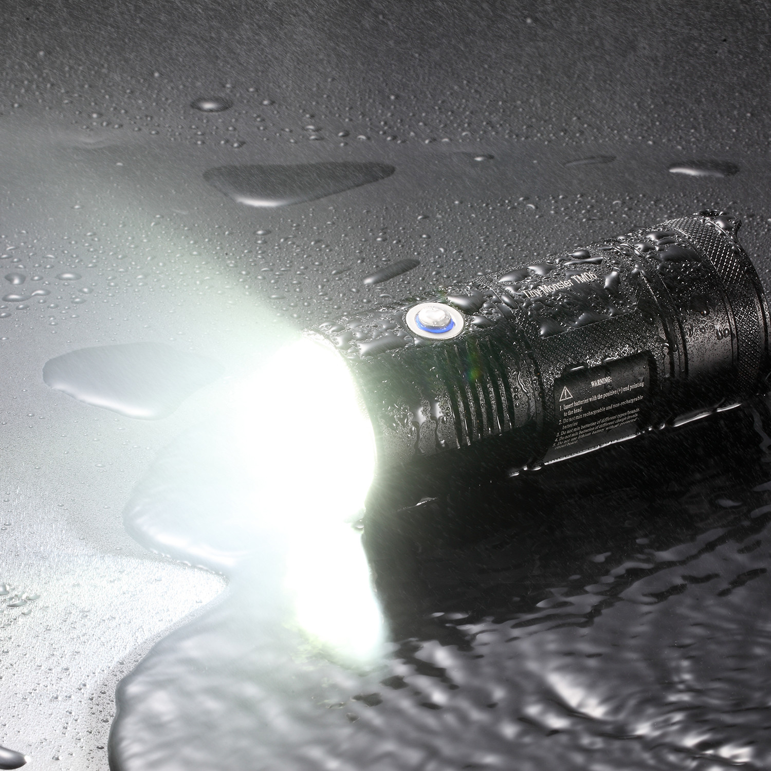 This Tiny Monster is the powerhouse behind a wall of light. Its quad-LED aluminum reflector projects a focused beam with optimum peripheral illumination, creating a blinding wall of light to shield the user from attacks. It has a peak beam intensity of 32,300 cd for a range of up to 359 meters. A flexible and intuitive interface allows users to cycle through all brightness levels with a long press or reduce output luminance with a short press.