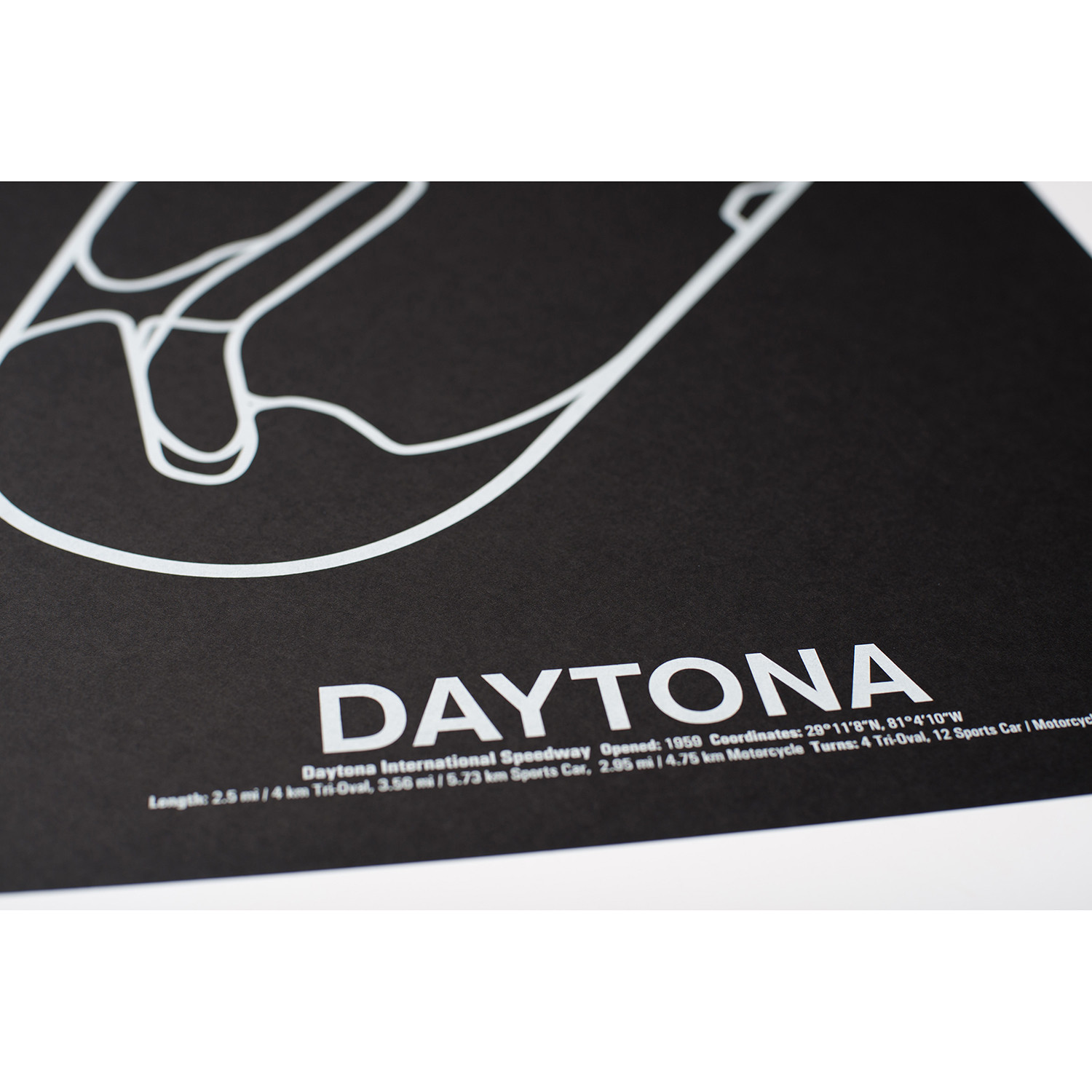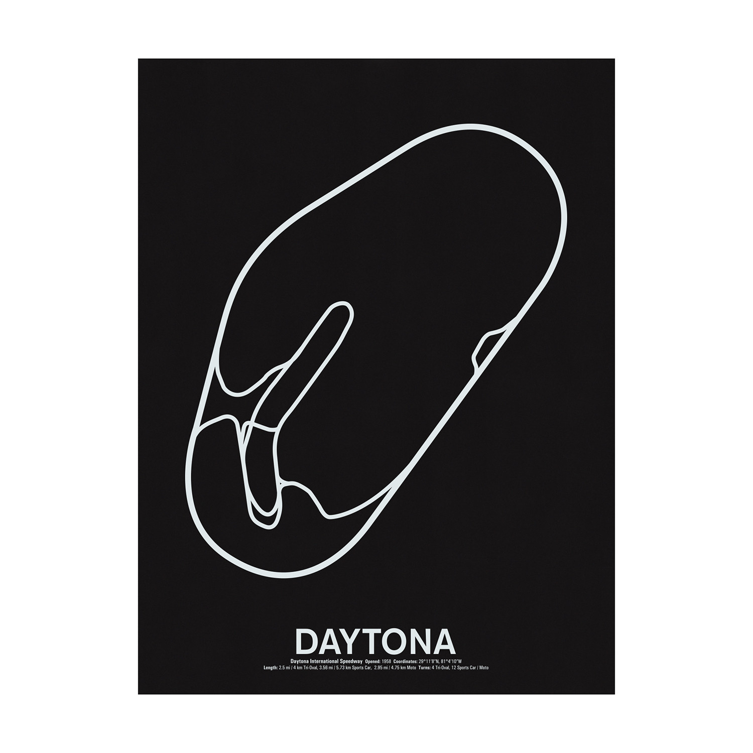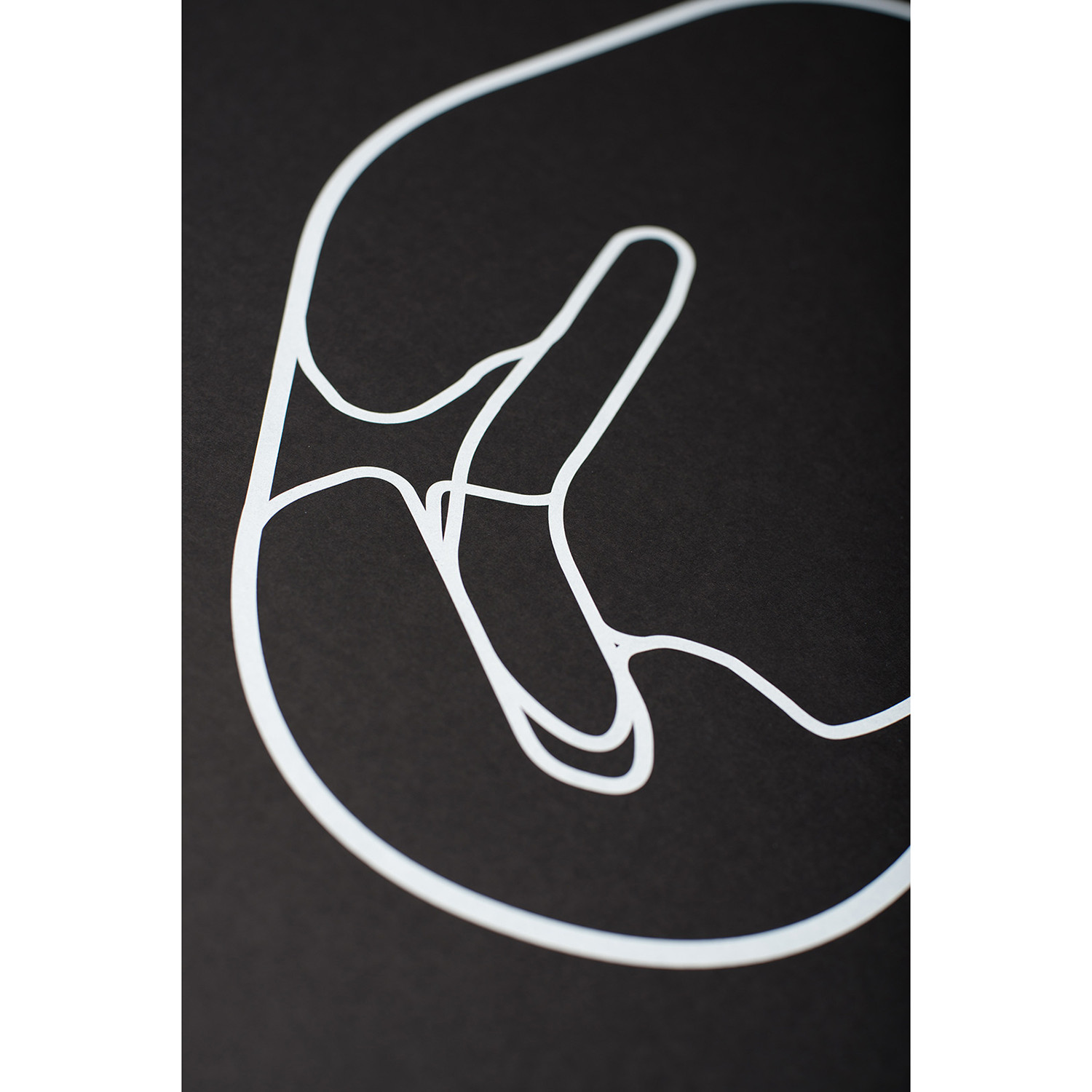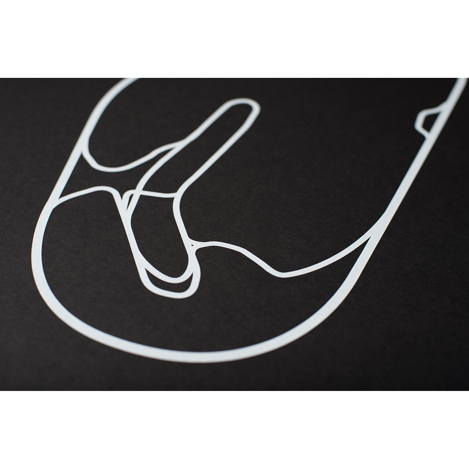 No wallpapered sponsorship logos here. The Racetrack Series of screenprints by Chicago-based design studio NOMO is deserving of wall space in your pristine garage, office or home. Printed with white ink on black paper from the French Paper Co., the sleek, minimalist posters feature simple diagrammatic linework of legendary race track circuits and course statistics.