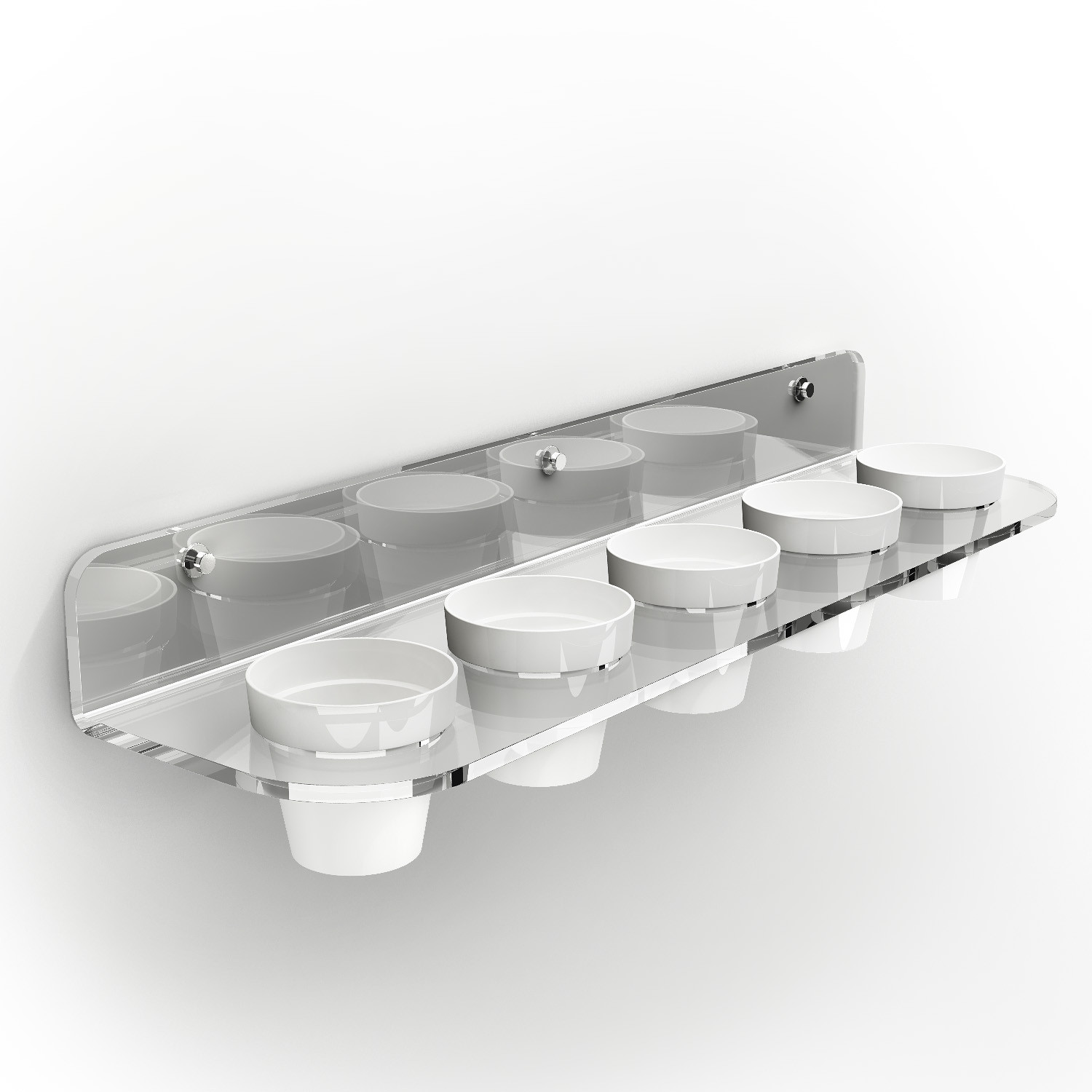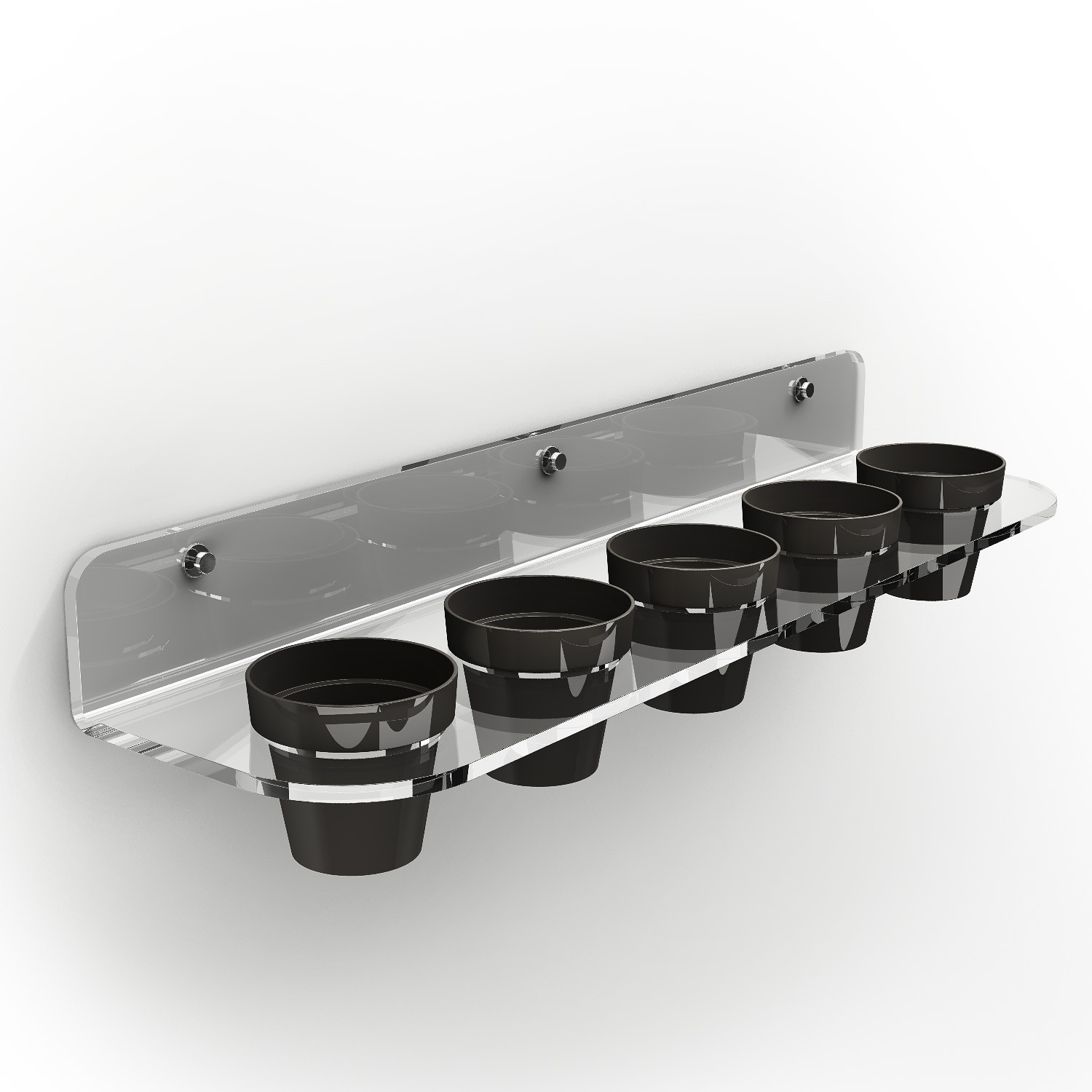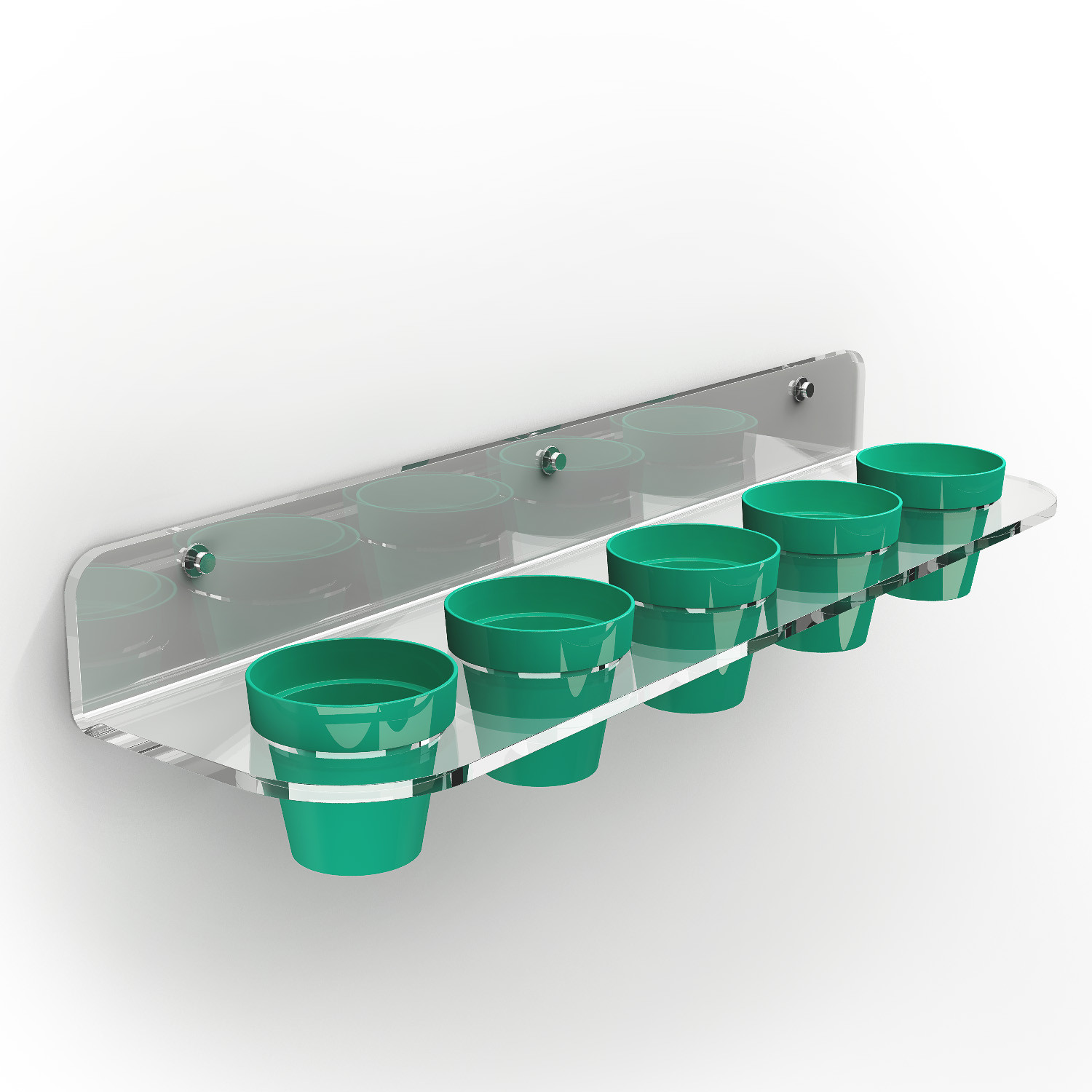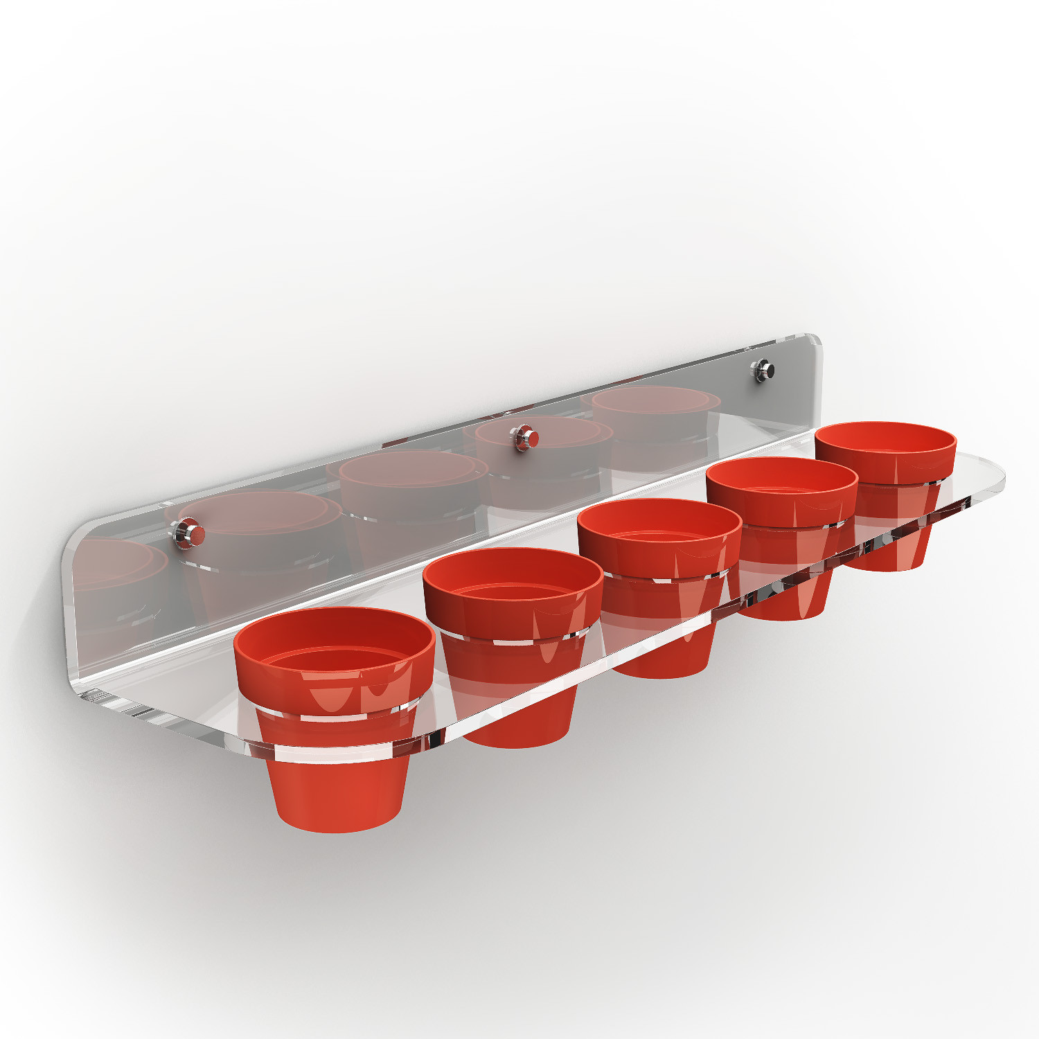 The G5 is a shelf for a modern gardener. The hand-bent and transparent methacrylate sheet contrasts beautifully with the silver hardware and 5 brightly-colored flower pots of your choice. A wonderful solution for home with ample wall space and not a lot of floorspace, you'll love the élan this planter brings.