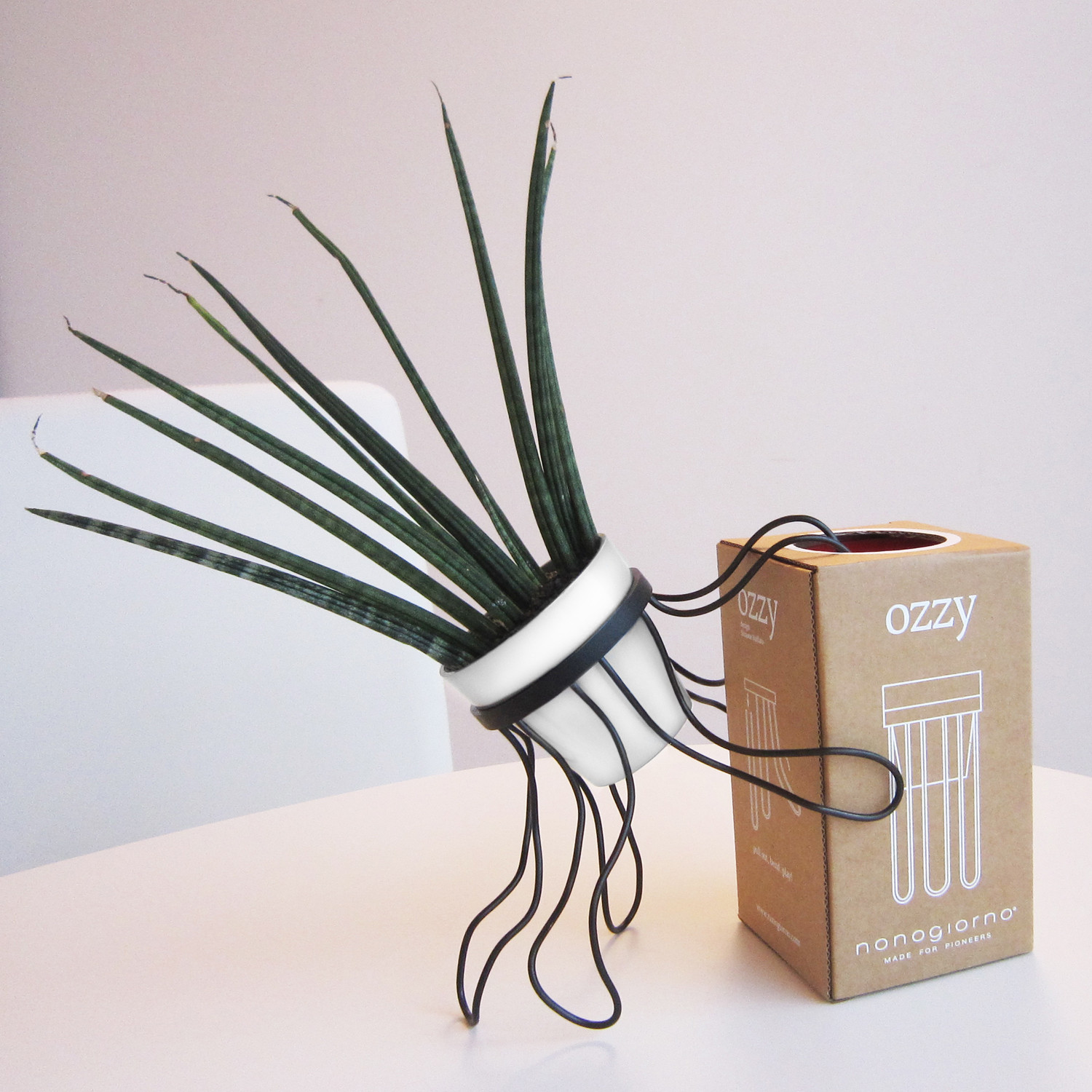 Versatile and multifaceted, the Ozzy Planter brightens up any living space by introducing a touch of green with a dash of whimsy. The soft aluminum "stems," which can be bent any which way, make Ozzy into a cross between your favorite fern and your cute new toy.