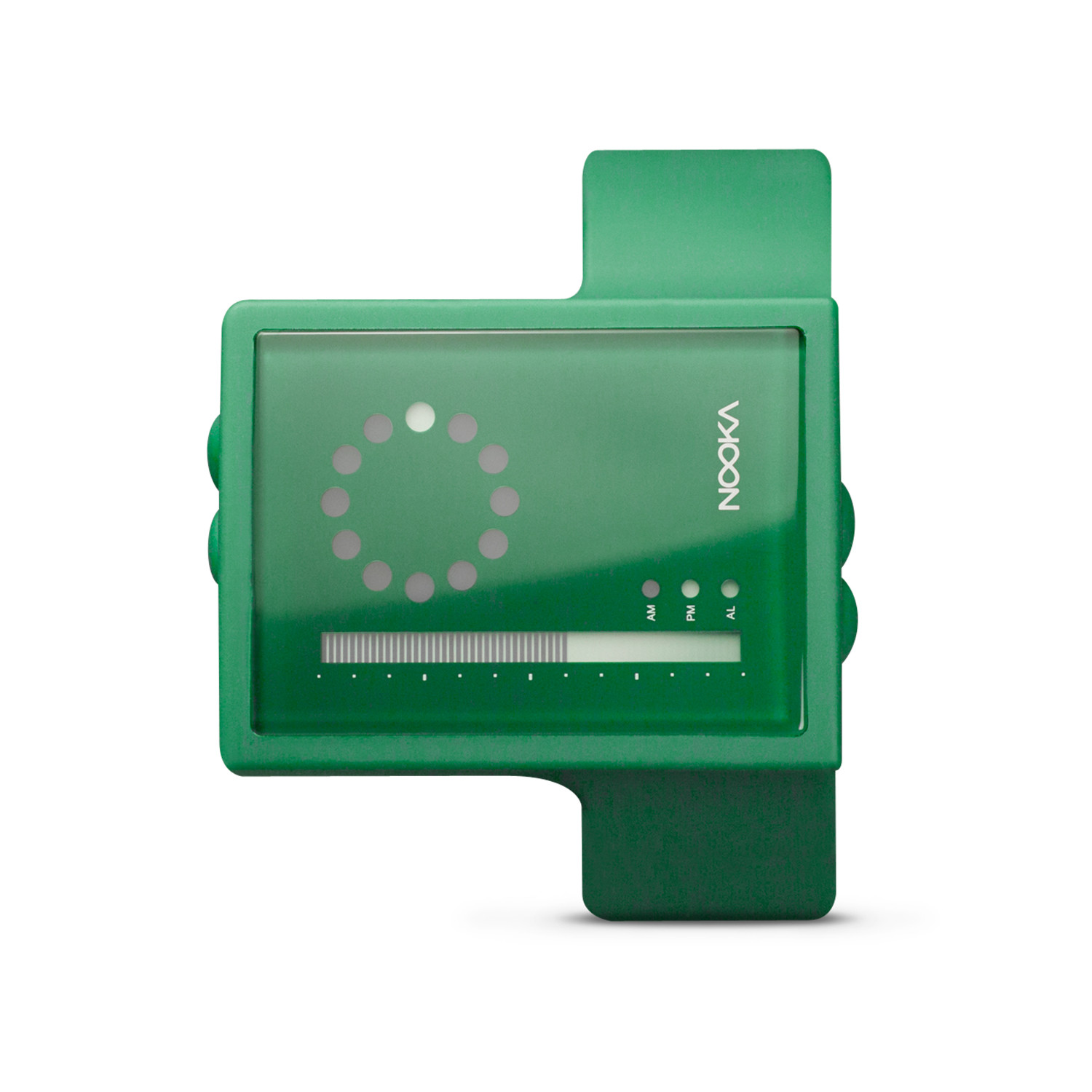 The Zub Zayu is Nooka’s largest display in the Zub collection. Taken from the Japanese word, sayu, meaning left and right, the Zayu is an asymmetrical timepiece with many innovative features, including the display with the hour “time capsule” graphic, an ergonomic asymmetrical design, as well as a curved case back for an even more comfortable fit. This zayu features the popular zirc display and is the first watch with “sleepmode” to conserve battery when not in use. Moreover, the Zayu is a truly ambidextrous design that wears well on both left and right wrists.