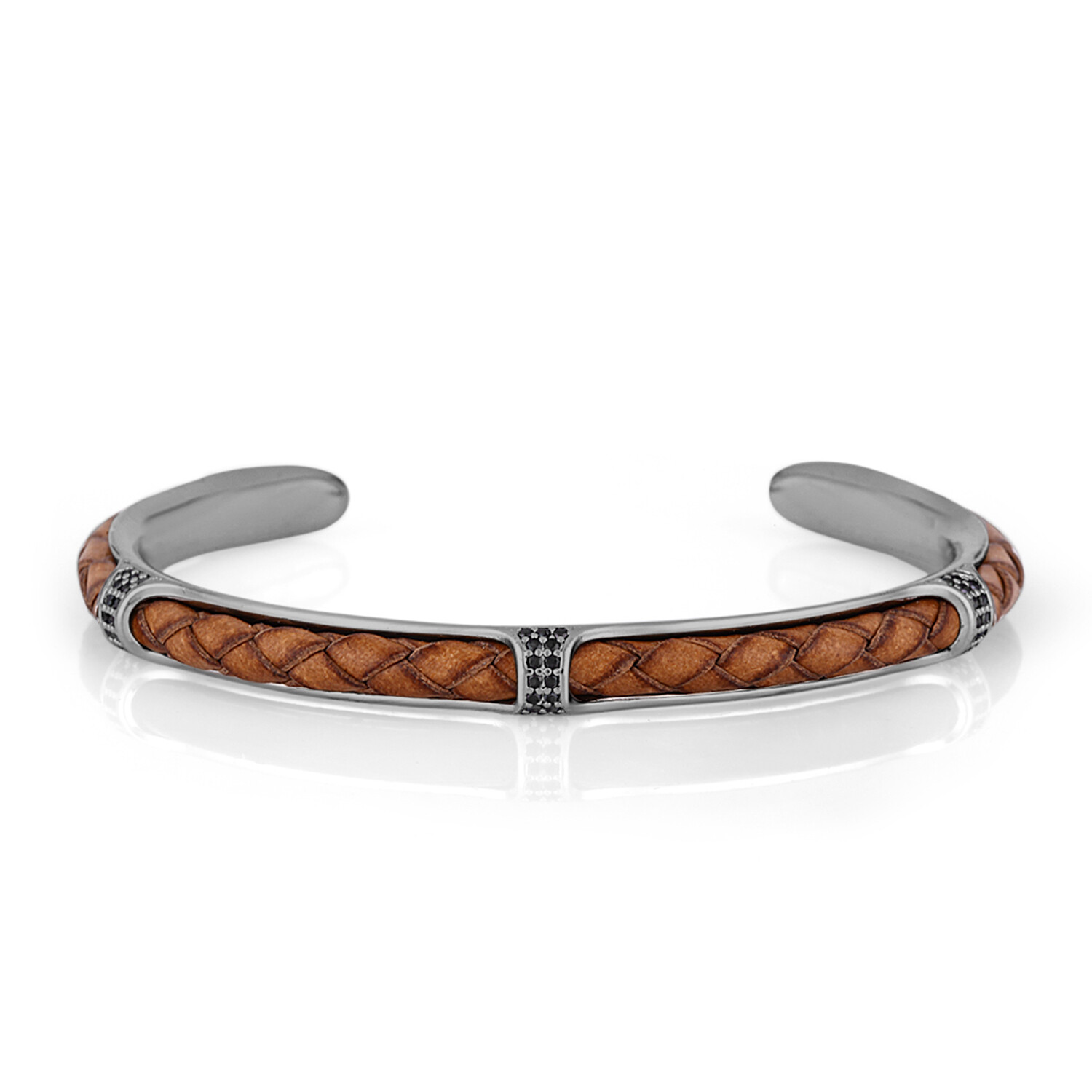 Brass + Leather Cuffed Bracelet // Silver + Brown