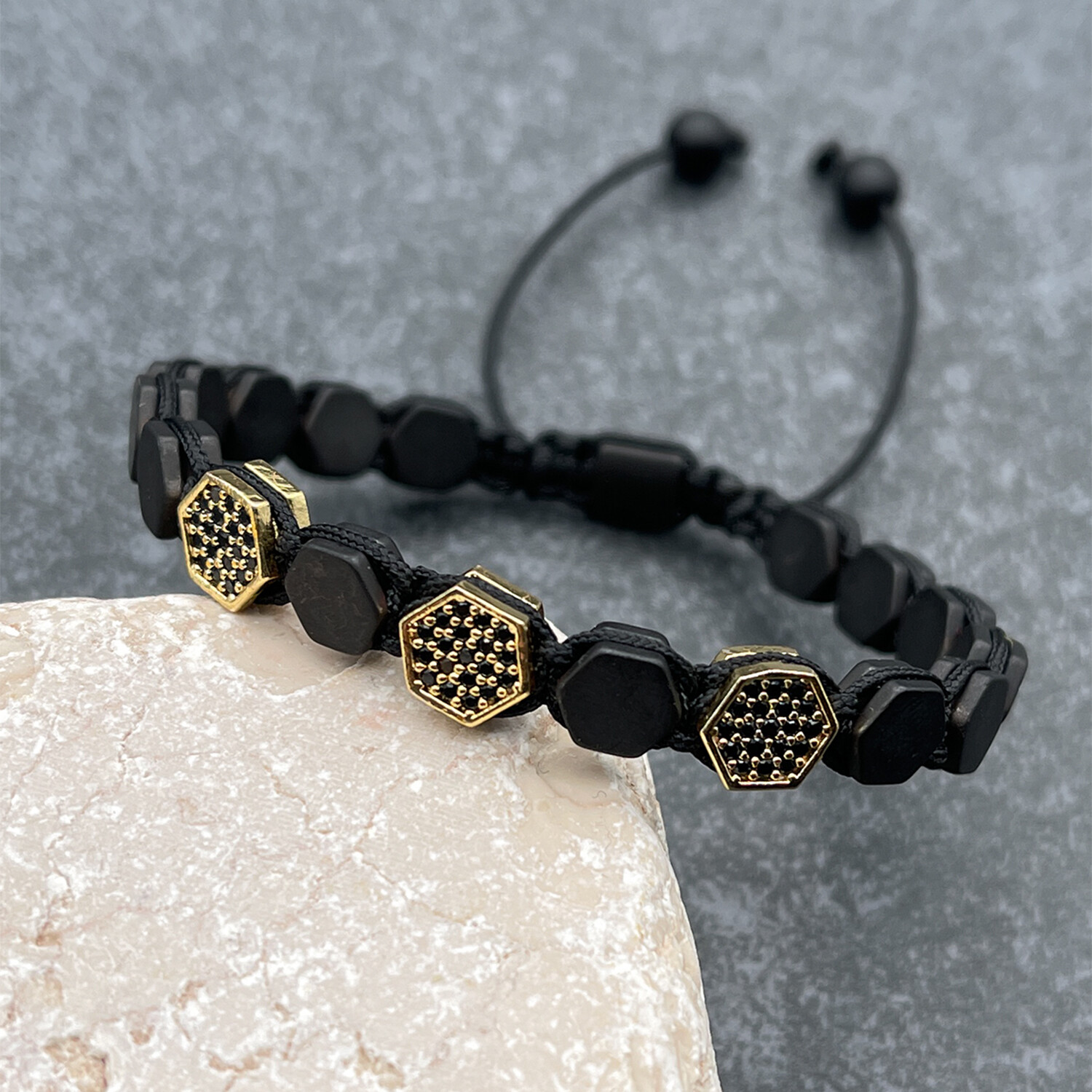 Hexagons Wrap Bracelet // Black + Gold