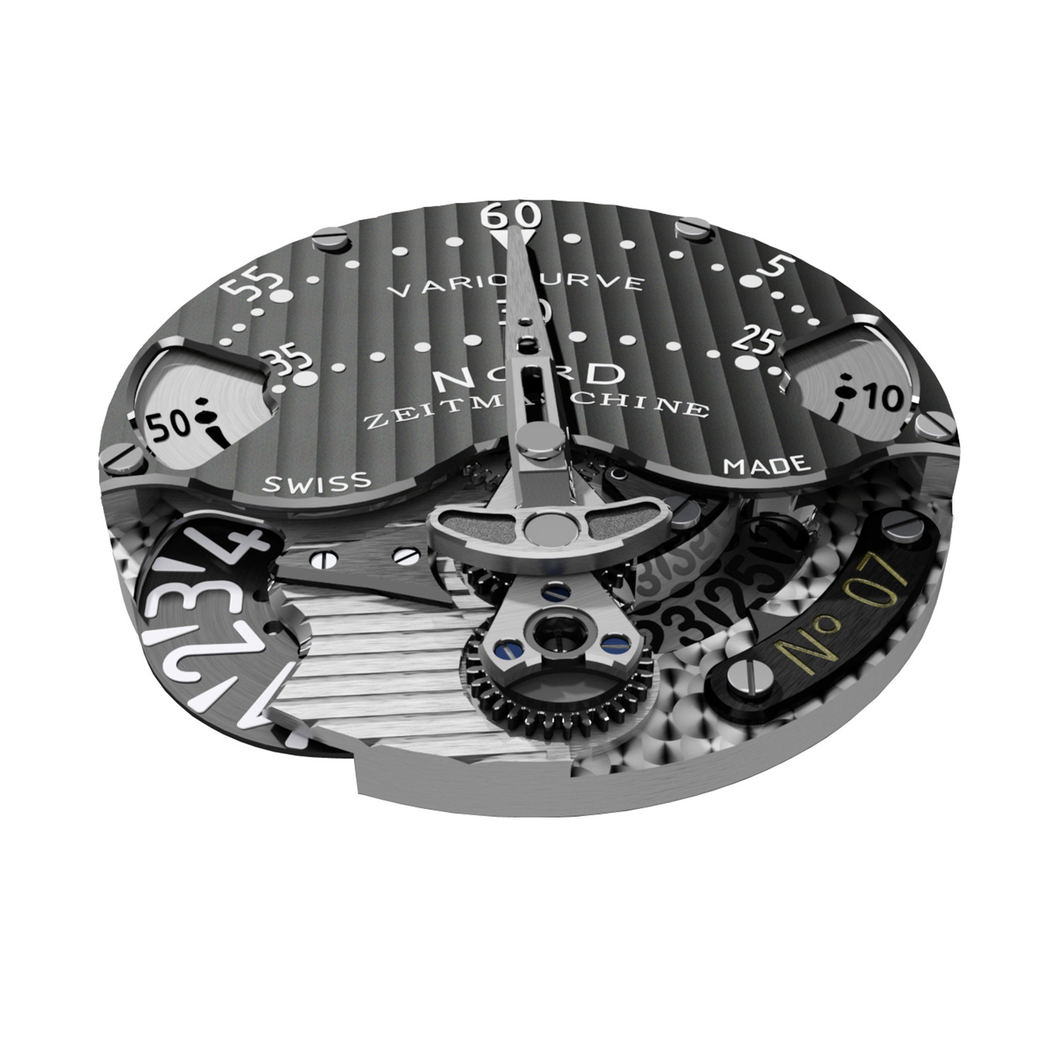 — Movement: Nord N2 Minutes Variocurve/Double Minute Segment Display/Hours Decentralized/Date
