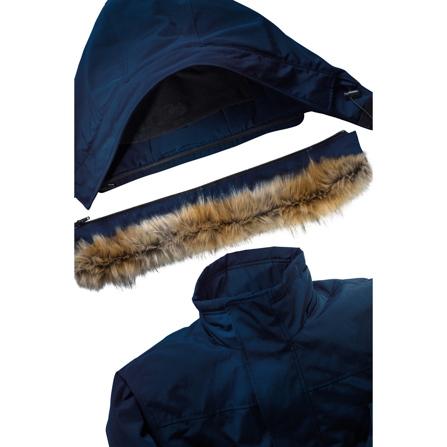 The jacket is made of multiple layers with a removable lining, and insulated with polyester and faux fur to help you stay warm, organized, and ready for anything.