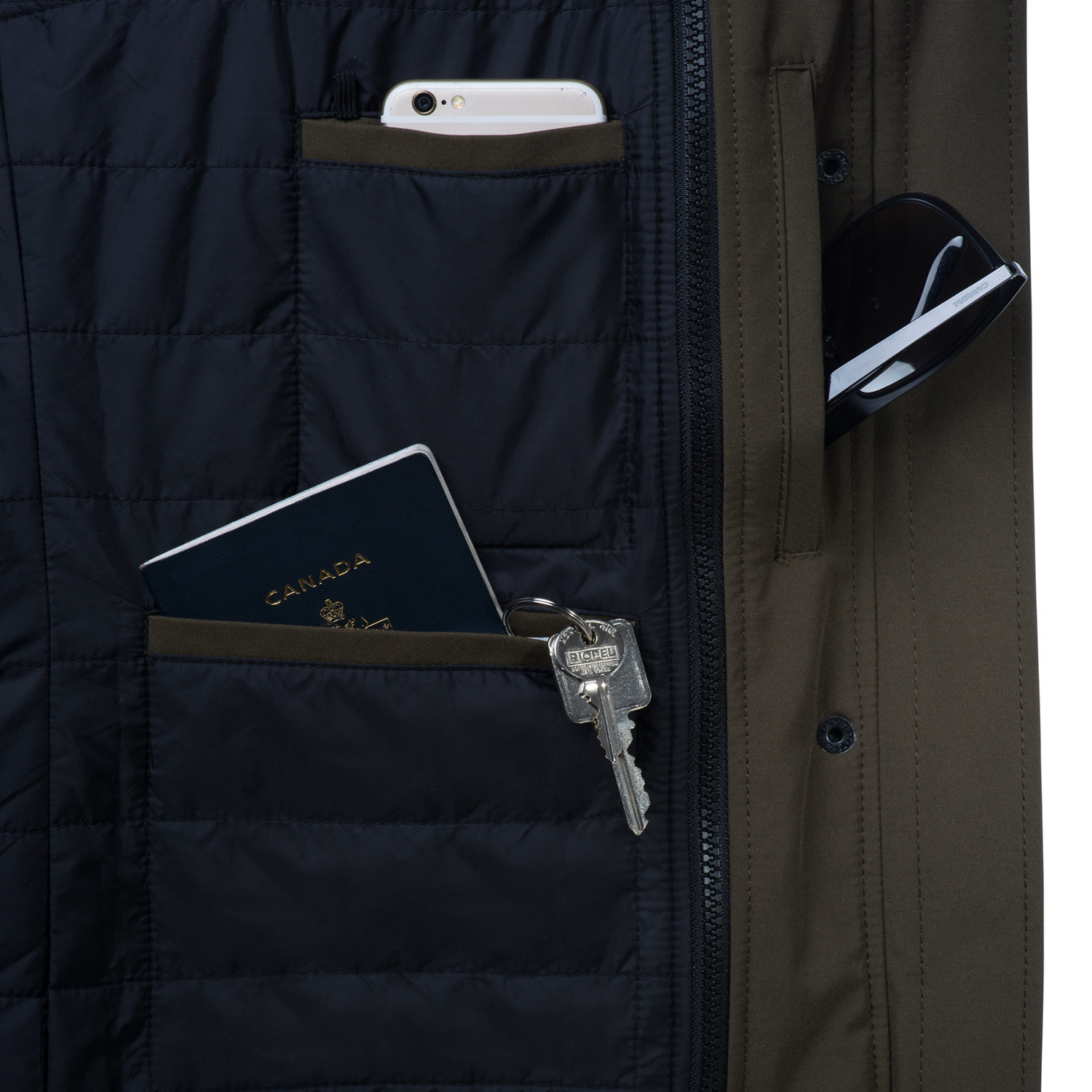 - Built-in Scarf - Smart Phone Pocket - Hat Pocket - Glasses Pocket - Removable Hood - Removable Fur - Tablet Pocket - Removable Lining - Length Extension - Tracker Tag - Heavy Duty YKK Zippers - Waist Cords