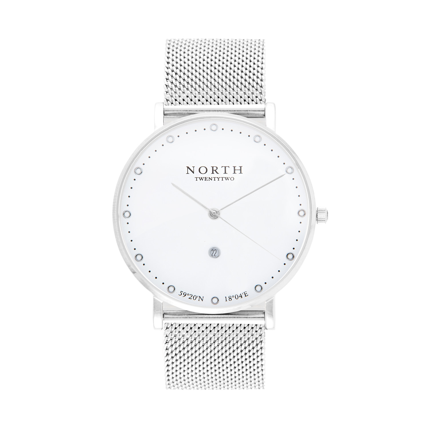 Kiruna is fitted with a mesh wristband made out of stainless steel. This minimalistic watch is powered by a Swiss movement, then protected by stainless steel and sapphire glass. Kiruna is part of the Nord collection, named after a city in northern Sweden.