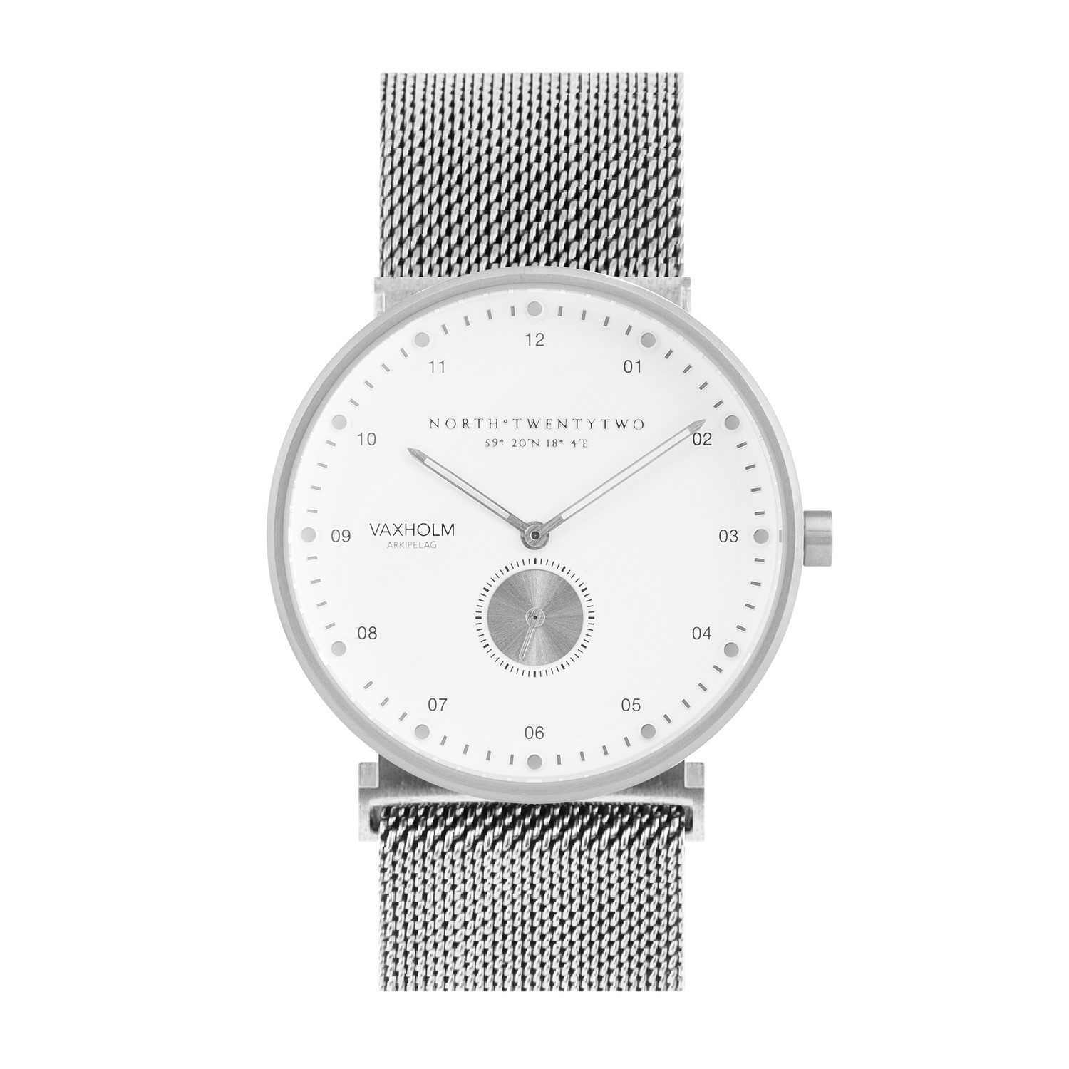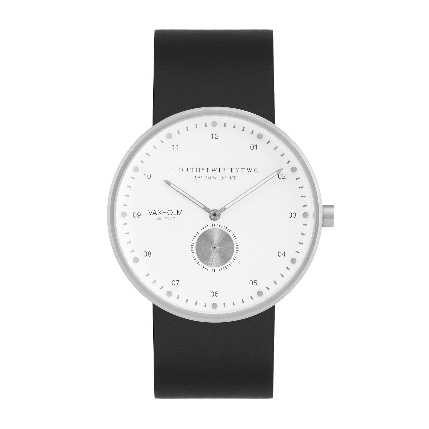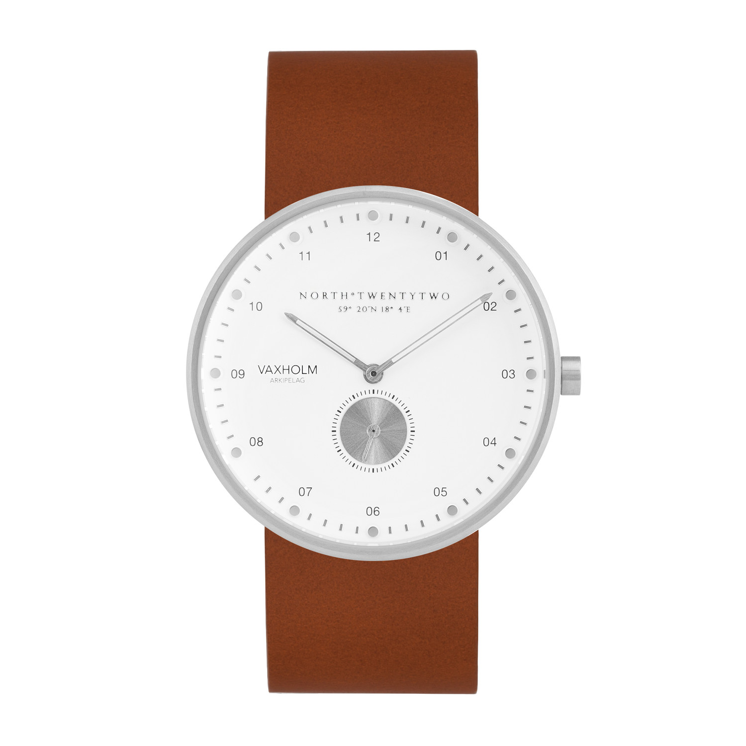 Vaxholm is inspired by the Stockholm archipelago which is seen in many aspects of the design. Powered by a Swiss Ronda movement then protected by 316L stainless steel and dome sapphire crystal with anti-reflective coating, the brushed silver case combined with a white face gives the timepiece a refined look.