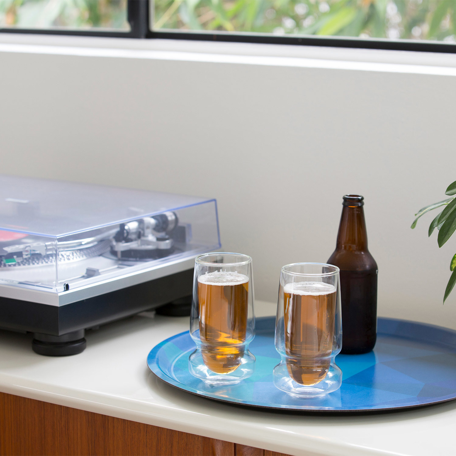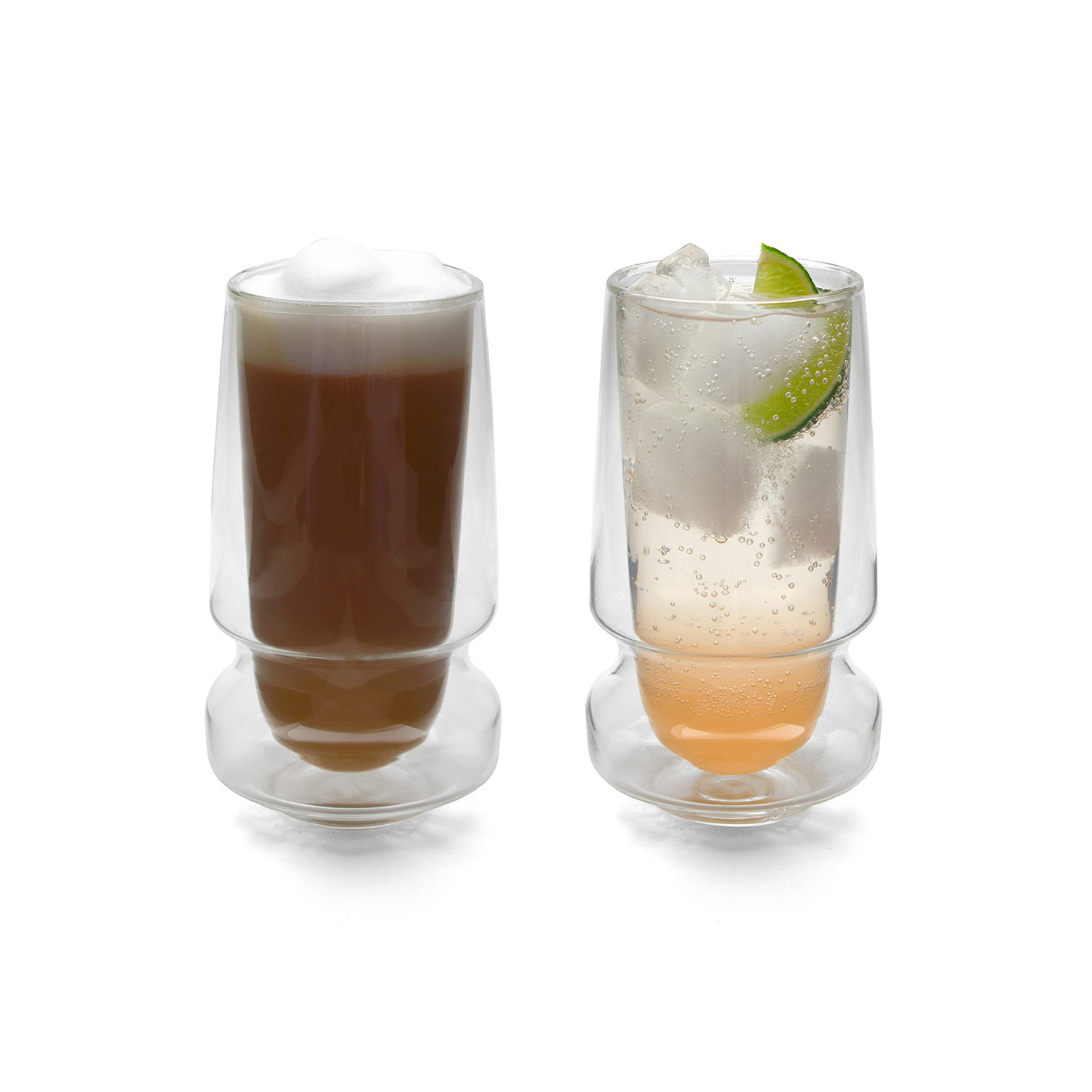 The CICLONE Double-Walled Cooler is engineered from the inside out. The contour of the interior creates the optimal fluid dynamics for the perfect pour, while the striking profile is inviting to hold. Whether serving a hot latte or an iced cocktail, these glasses remain comfortable to the touch. Meticulously designed and tested, the CICLONE cooler achieves a seamless marriage of form and function. Each glass is handmade from borosilicate, a lightweight laboratory-grade glass that is heat- and scratch-resistant.