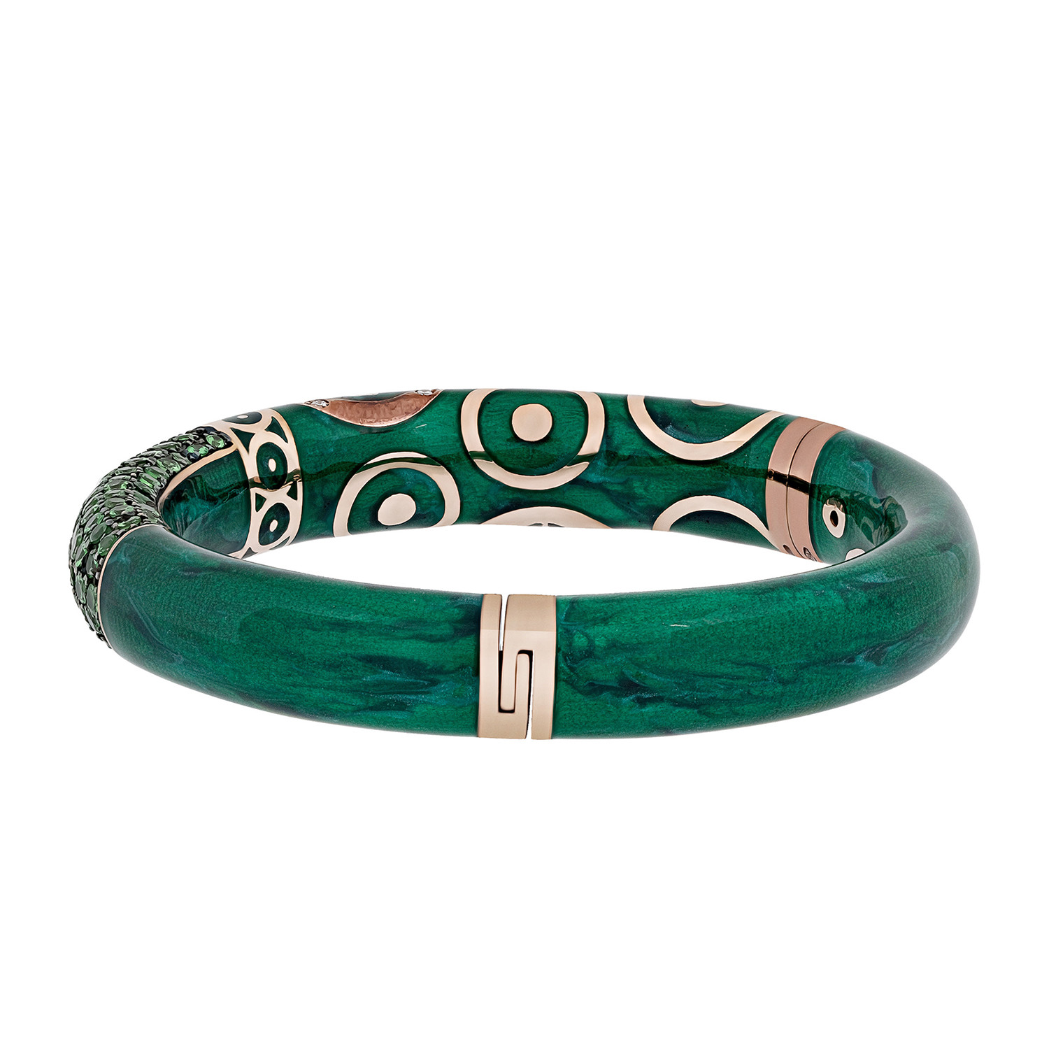Nouvelle Bague Hammam della Rosa 18k Rose Gold Diamond + Green Enamel Bangle Bracelet // Inner Circumference: 7"