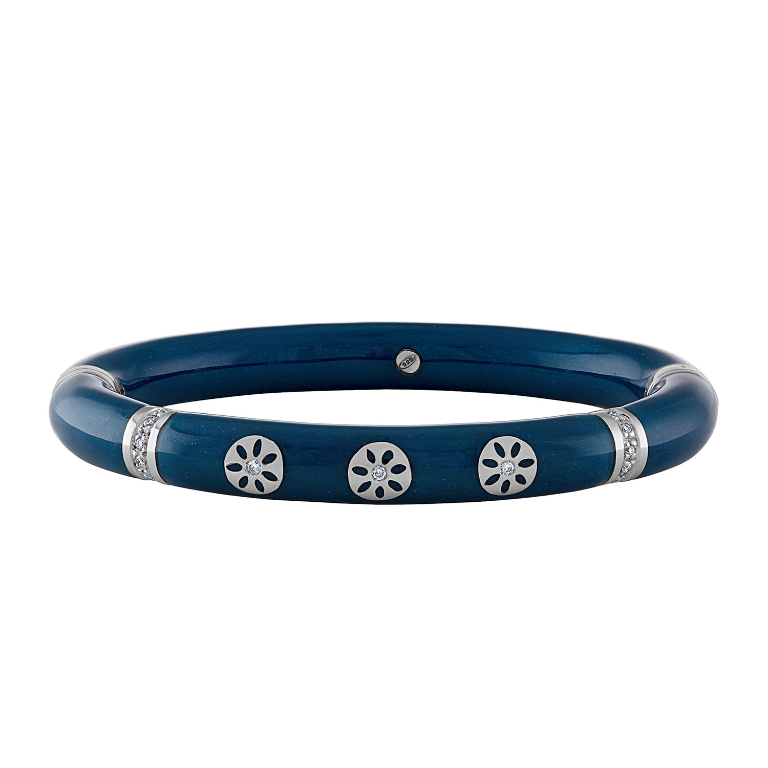 Nouvelle Bague India Preziosa 18k White Gold Diamond + Navy Blue Bangle Bracelet // Inner Circumference: 6.5"