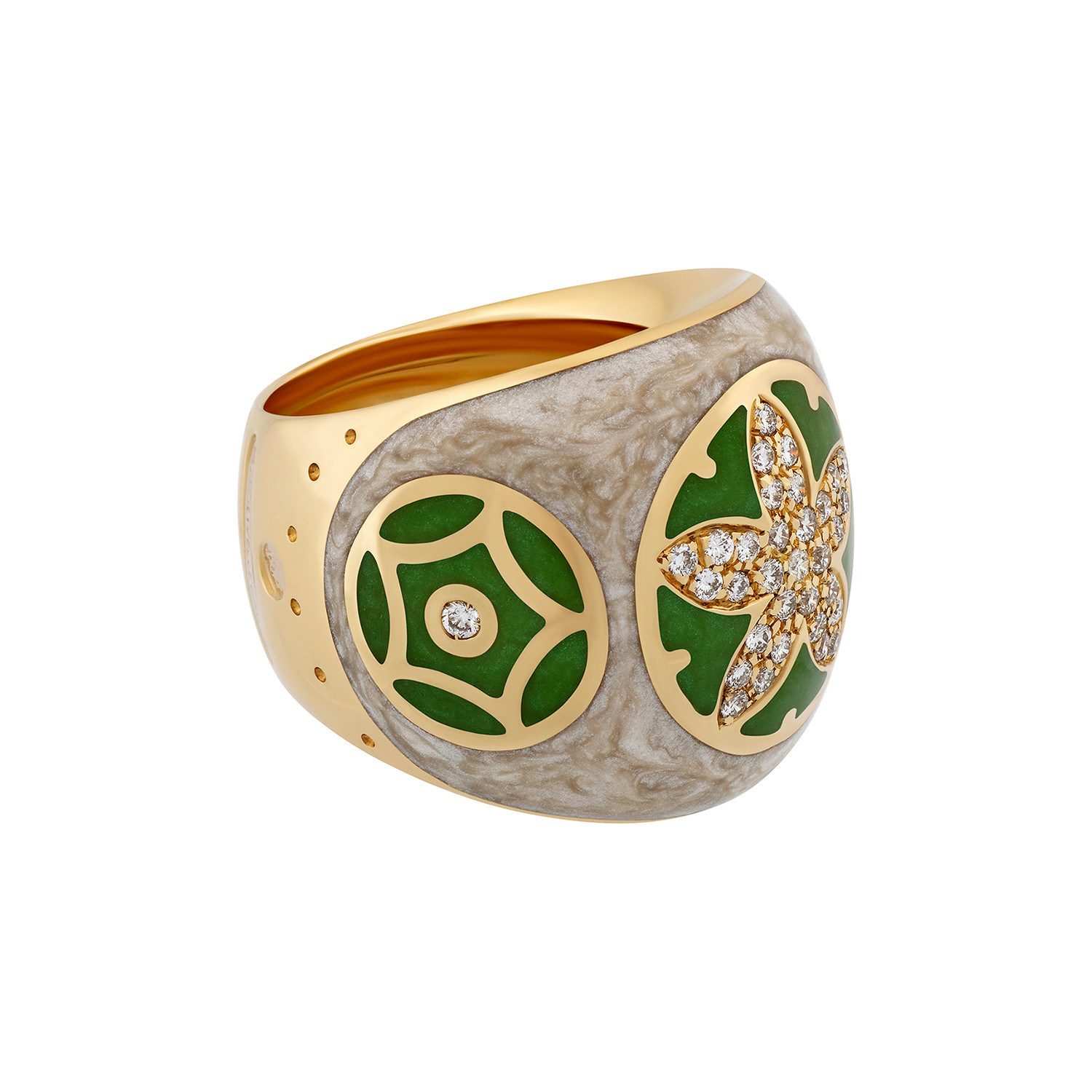 Nouvelle Bague India Preziosa 18k Yellow Gold Diamond + Green + Tan Enamel Ring // Ring Size: 7