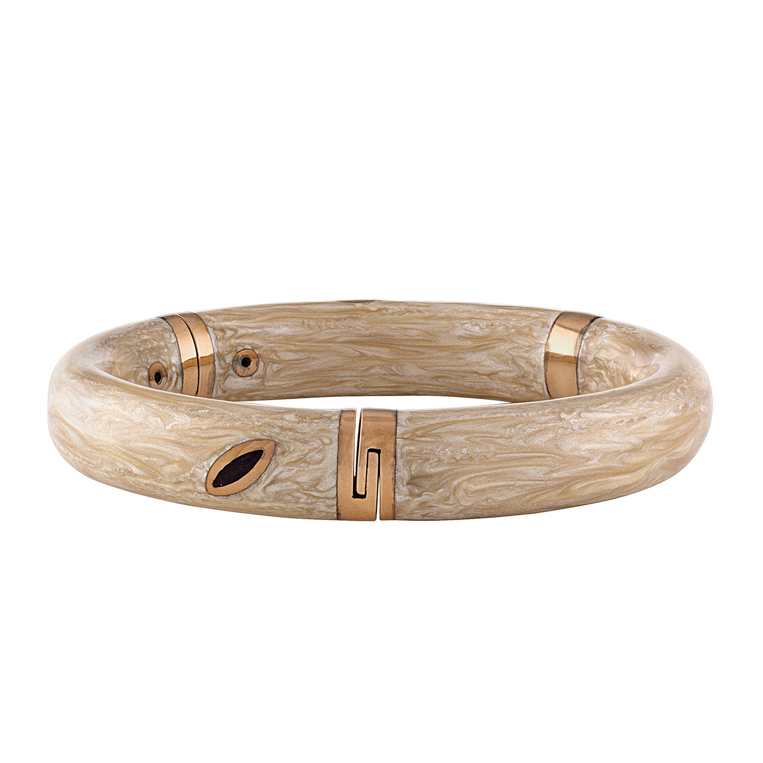 Nouvelle Bague Petali 18k Rose Gold Diamond + Tan + Brown Enamel Bangle Bracelet // Inner Circumference: 6.5"