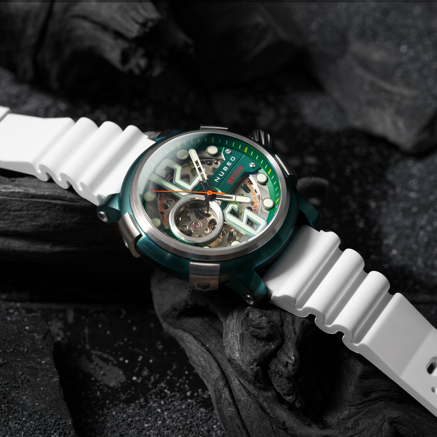 Nubeo takes inspiration from the depths of the ocean to the expanses of outer space to create watches that are a testament to excellence. Each Nubeo timepiece is defined by performance and functionality, with a design language that blends the organic and natural with the industrial for a truly unique exhibition of time.