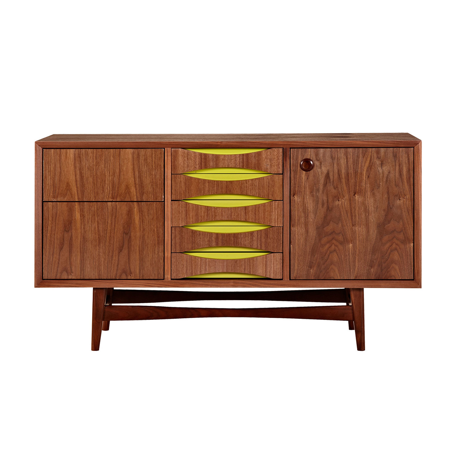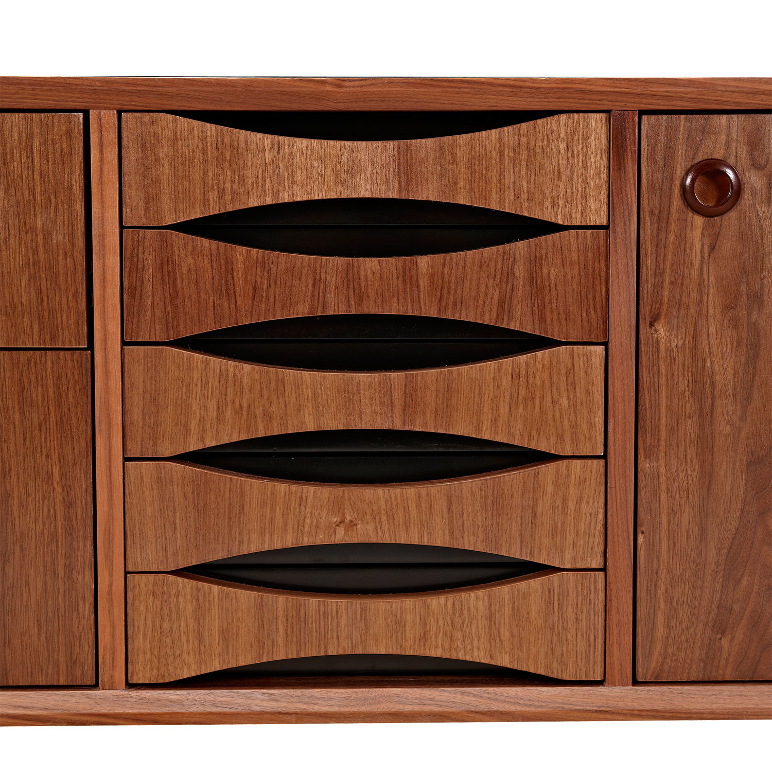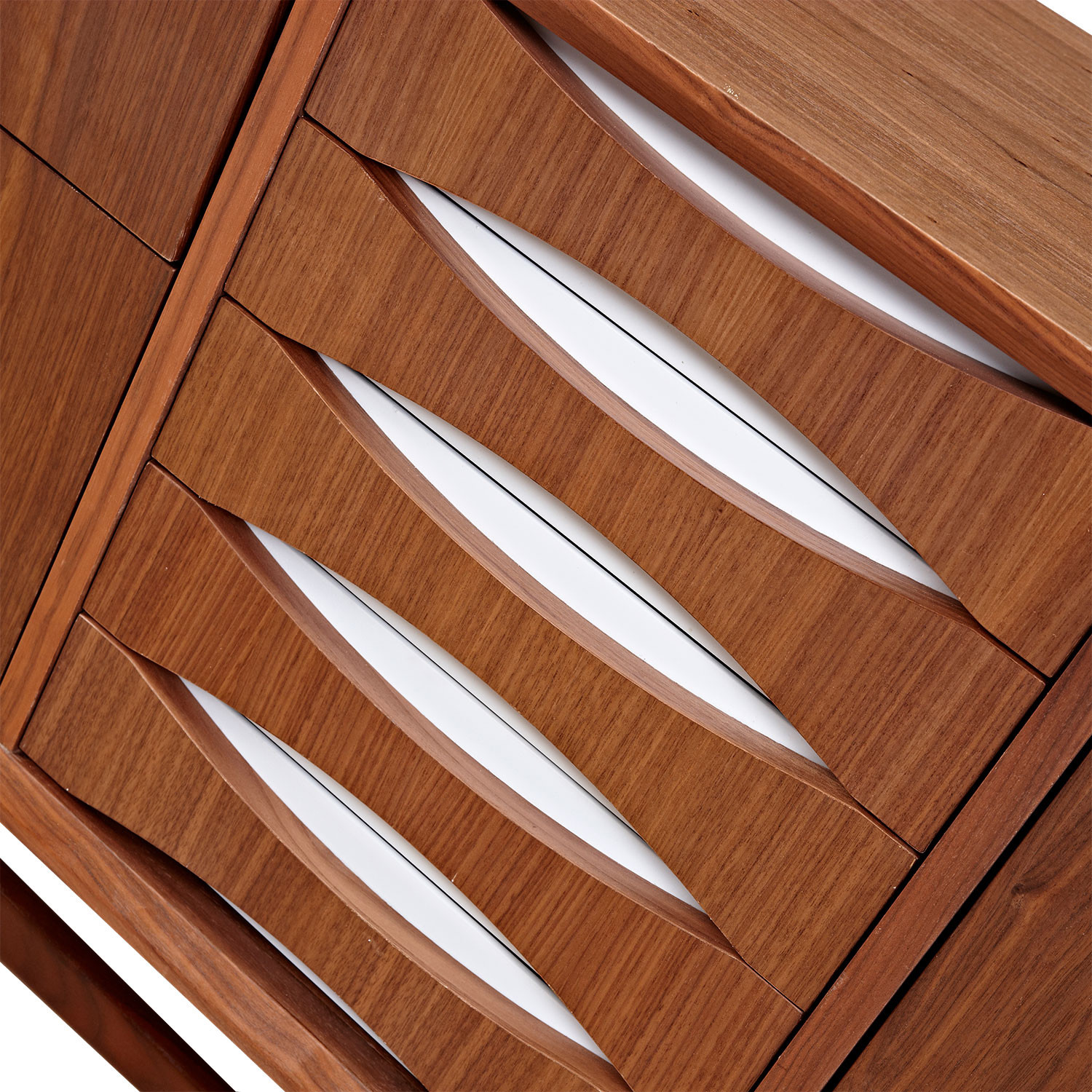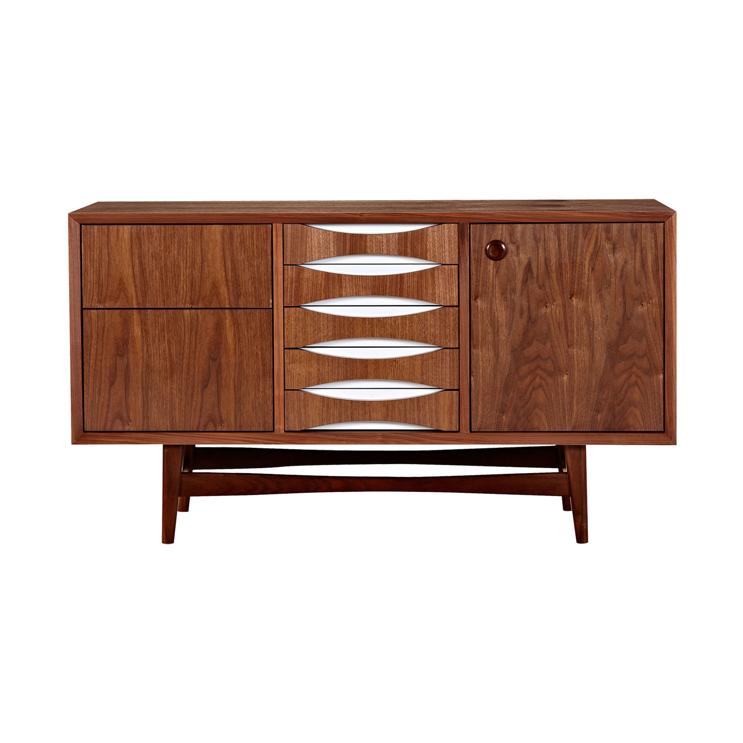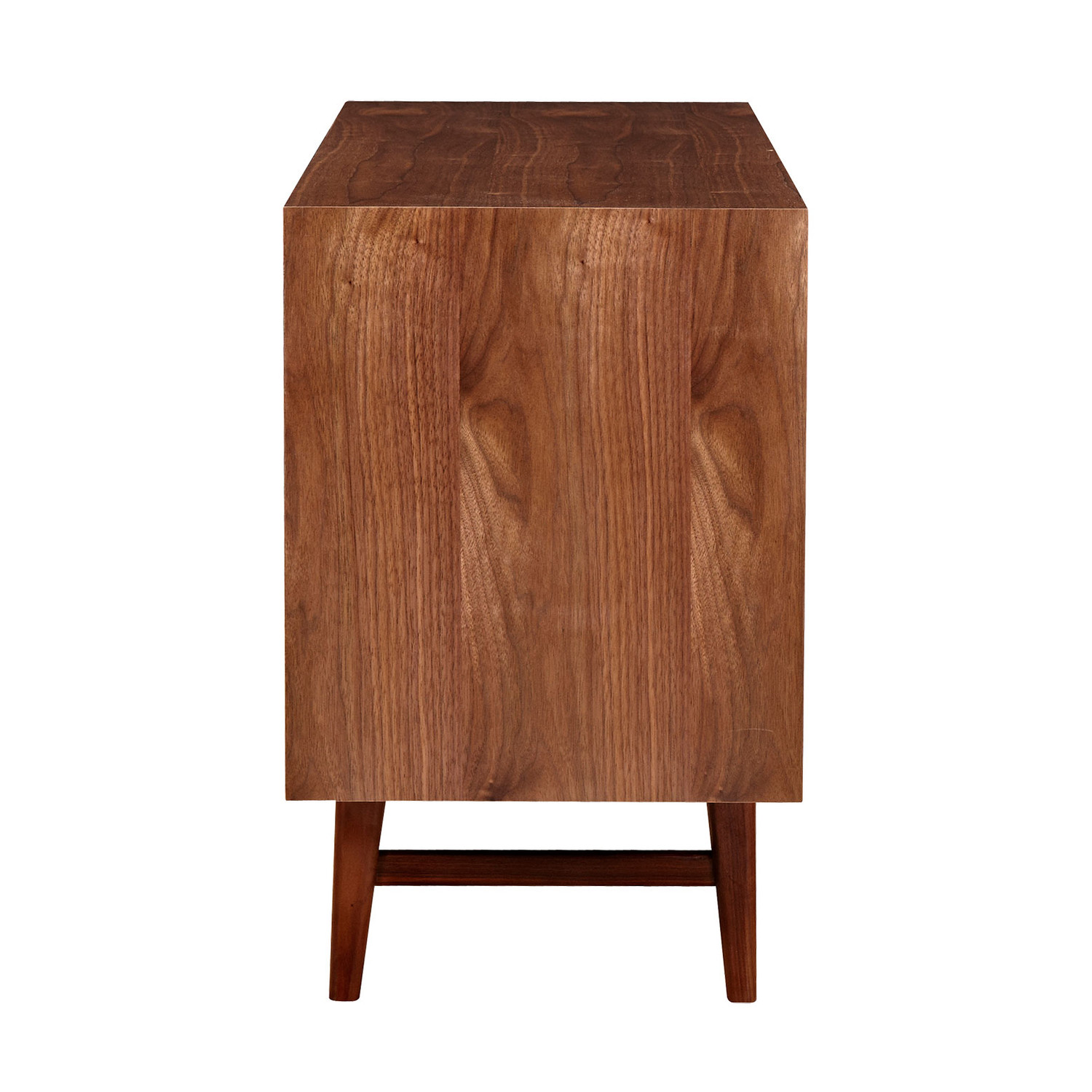 The Hanna Sideboard in walnut veneer brings a warm, natural feeling to your room. The distinctive grain pattern in the walnut veneer gives this piece of furniture a unique character, while accommodating any storage needs you might have.
