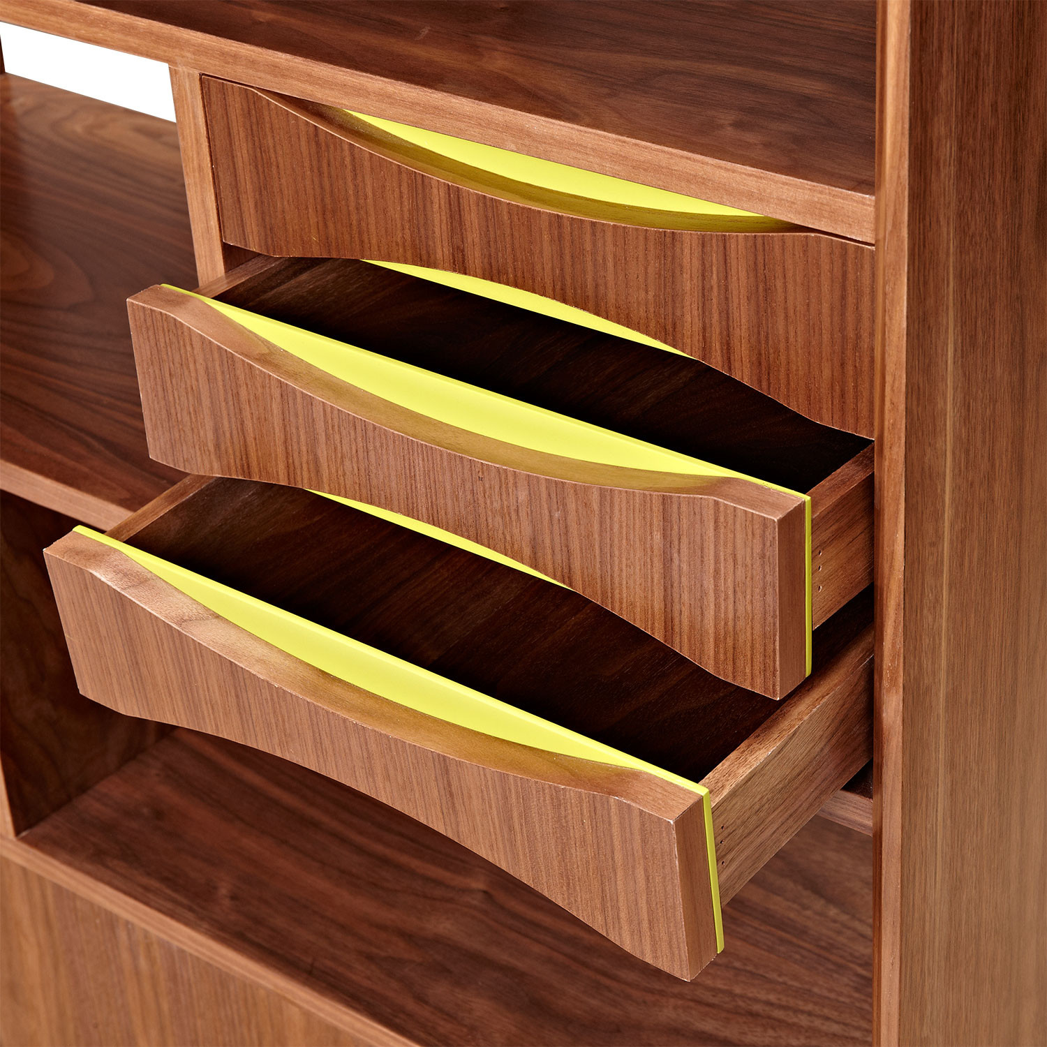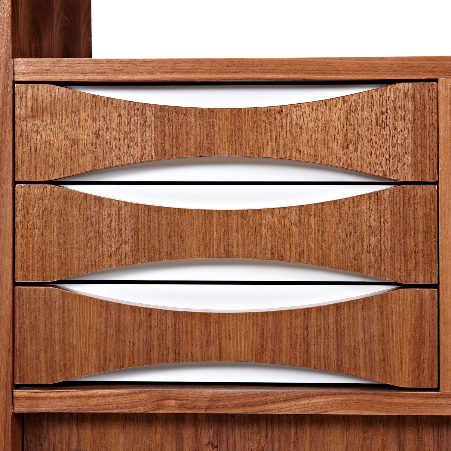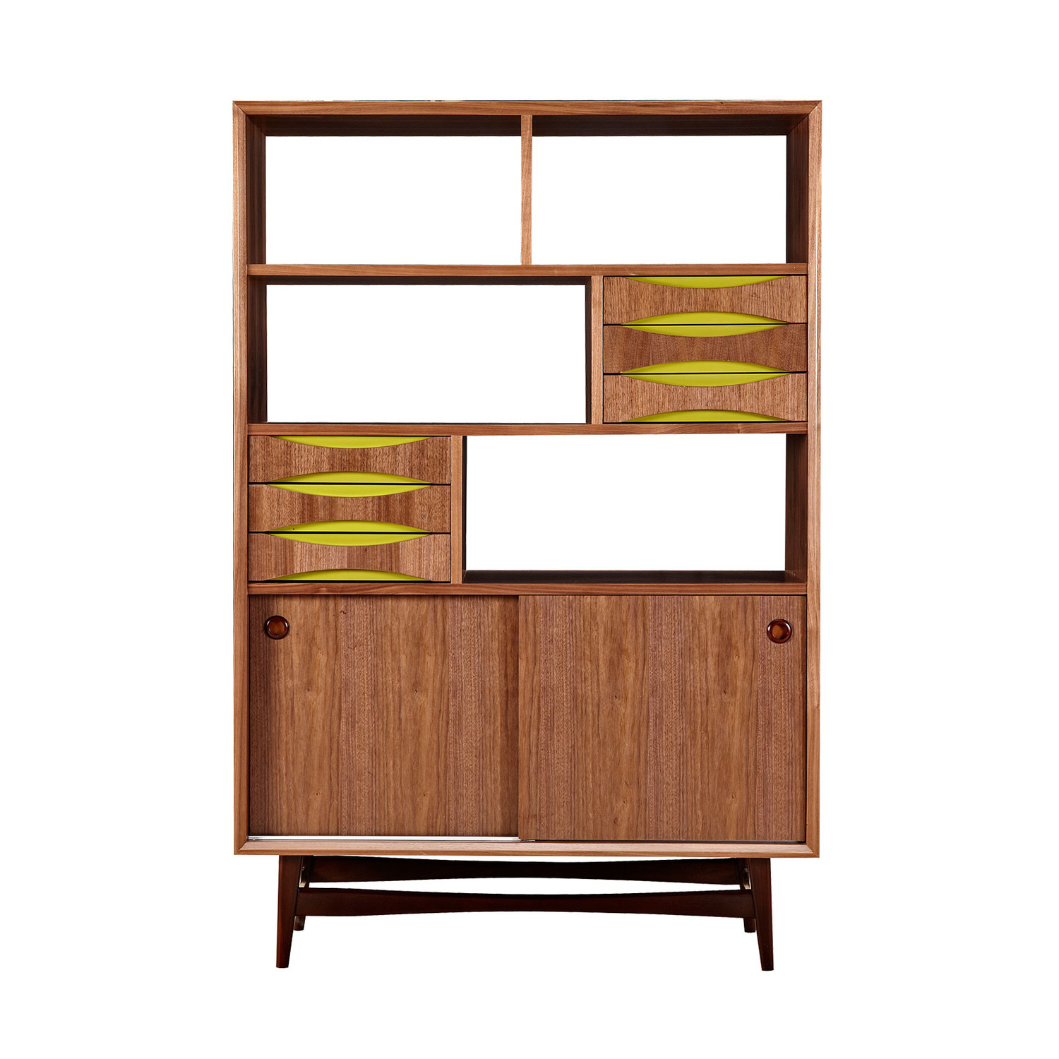 This beautiful storage unit is the perfect example of maximum storage achieved through simple design. The open compartment with several sections, allow the display of your favorite colorful items, while the matt colored drawers offer plenty of storage.