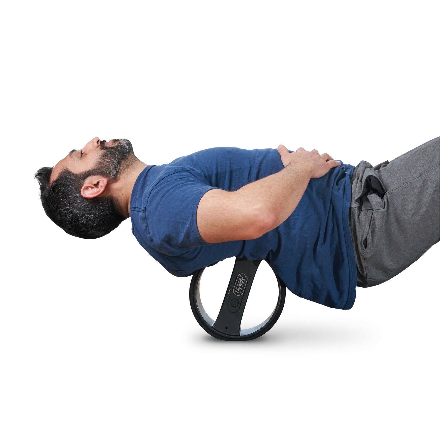 The 9” Harpe Pro Wheel runs on a powerful motor to help loosen up sore muscles and joints even faster. With varied intensity settings, it does so much more than stretch the back. It provides massaging recovery therapy for your neck, back, hips, arms, thighs, calves, shins, and chest and will become the most versatile exercise and pain recovery tool in your home.