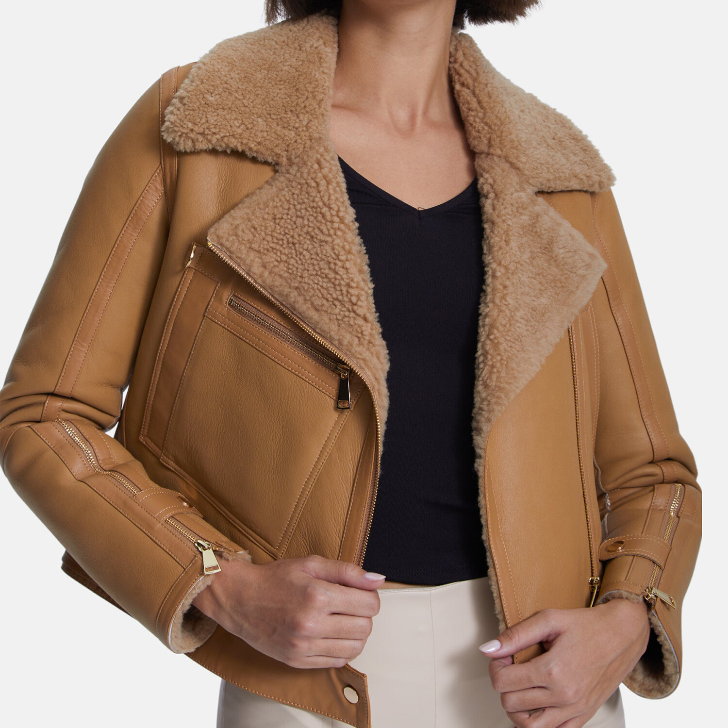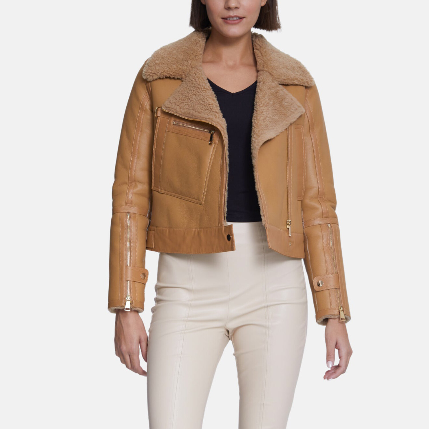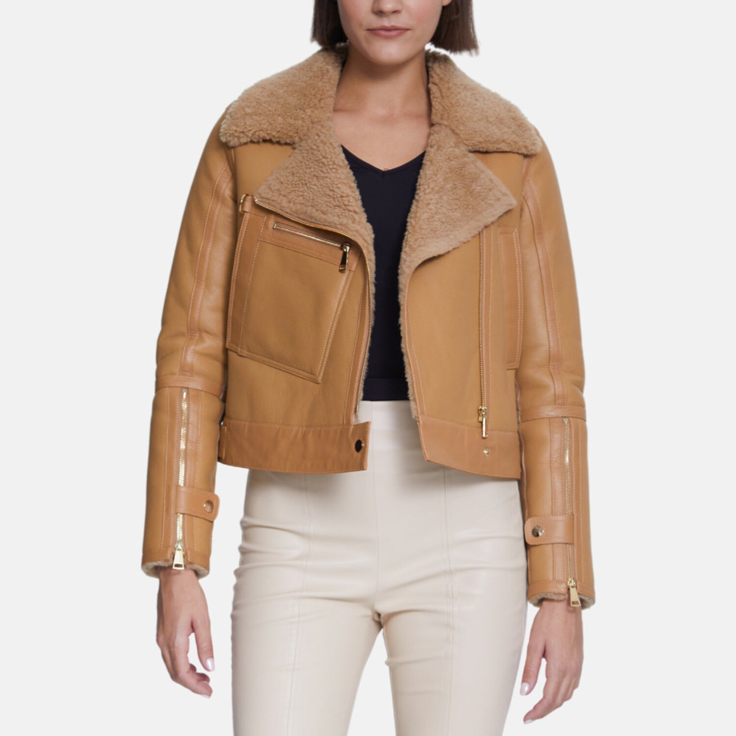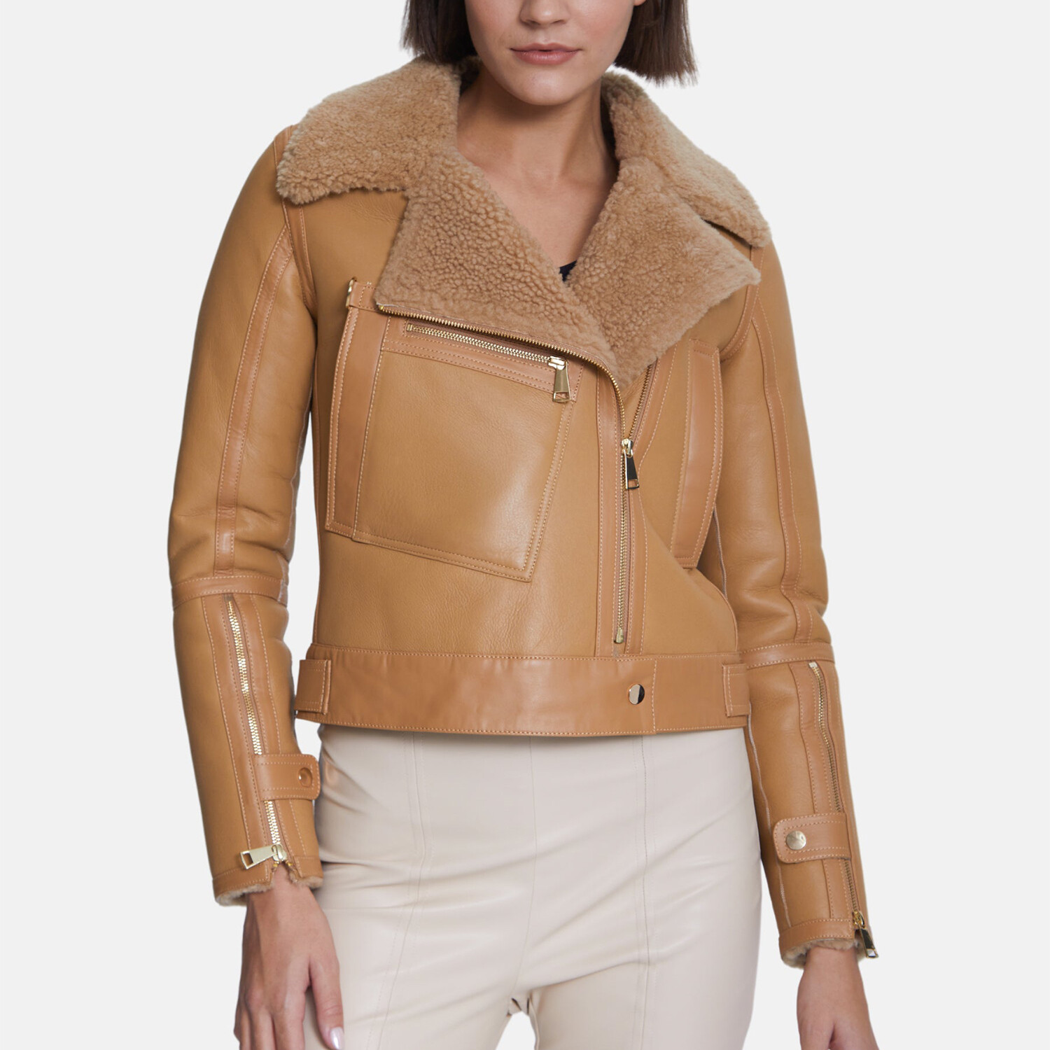 Women's Shearling Jacket // Silky Beige Mink With Mink Curly Wool (S)