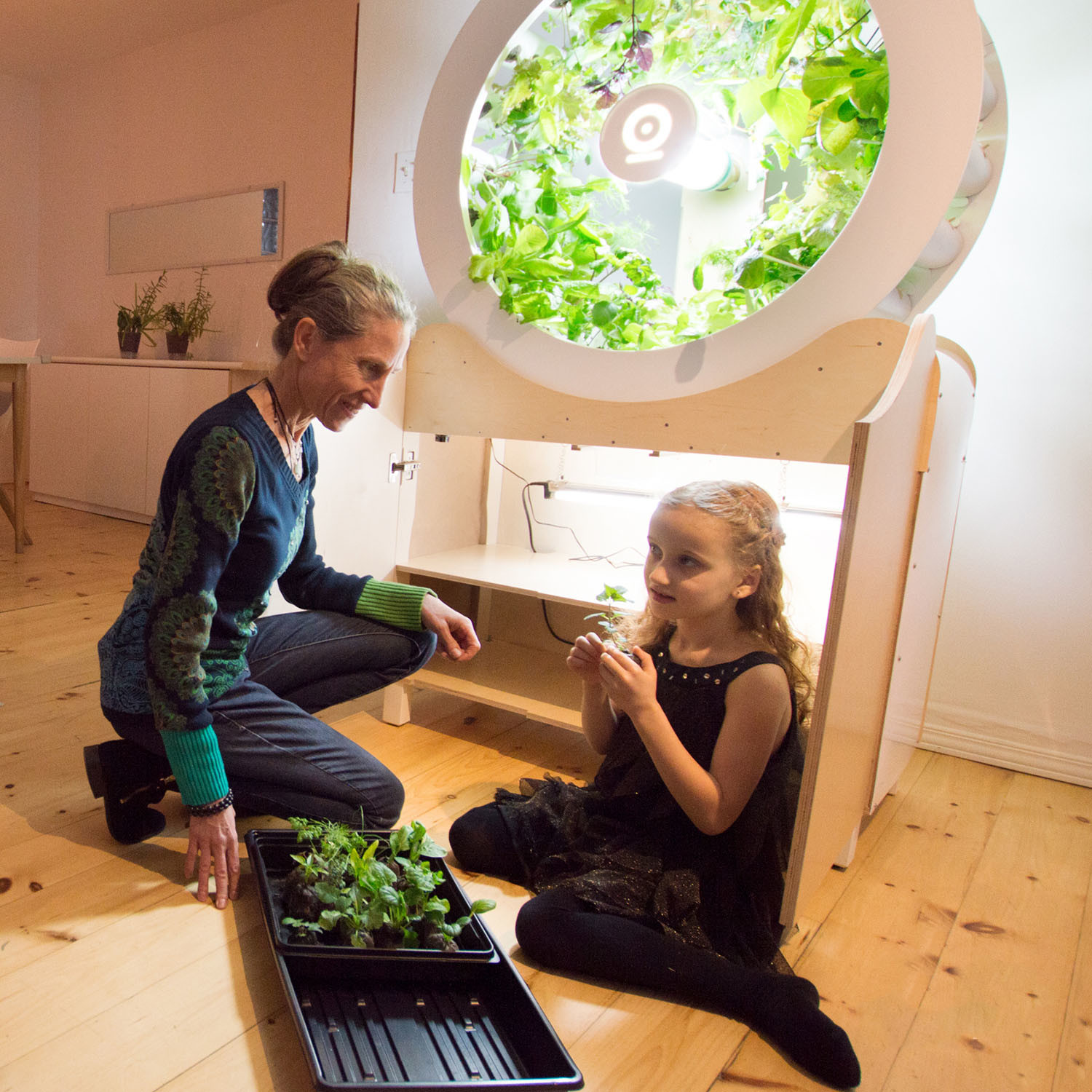 OGarden is an easy, innovative way to produce vegetables directly at home. It has a production capacity of 160 plants at the same time, enough to harvest every day. It comes equipped with special lamps with an automatic adjustment, which allows the plants to grow without any problem all year. The unique, sophisticated design will be right at home in any room.