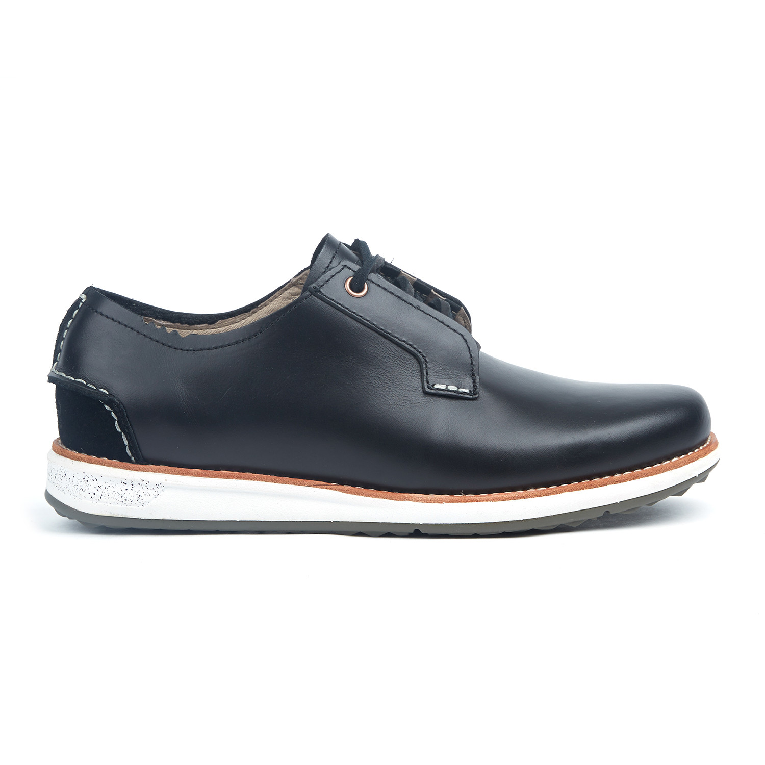 The Farrell Hidden Eyelet Derby is a hidden eyelet, plain front shoe in black full grain leather. It mixes sporty style with slick detailing.