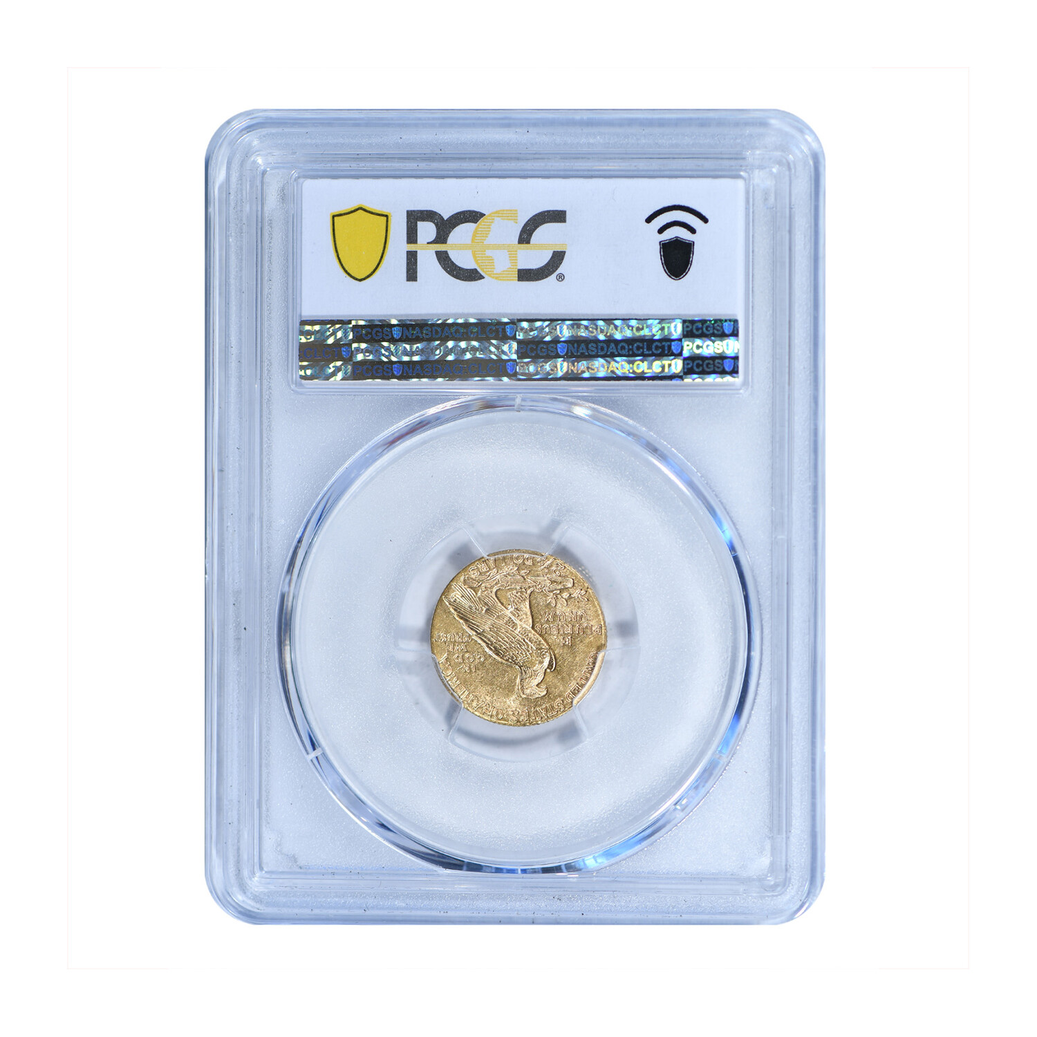 By the early 20th century, the designs of U.S. gold coins were long overdue for a makeover. The Liberty Head design had been employed for nearly 60 years with little modification. President Theodore Roosevelt took personal interest in redesigning the nation’s gold coins and commissioned famed sculptor Augustus Saint-Gaudens to create new patterns for the $10 and $20 gold pieces, which debuted in 1907 with much fanfare. The new $2.50 and $5 designs followed the next year. These two coins are distinctly unusual because they are the only U.S. coins with incuse designs-- that is, the letters and images are depressed into an otherwise flat plane.