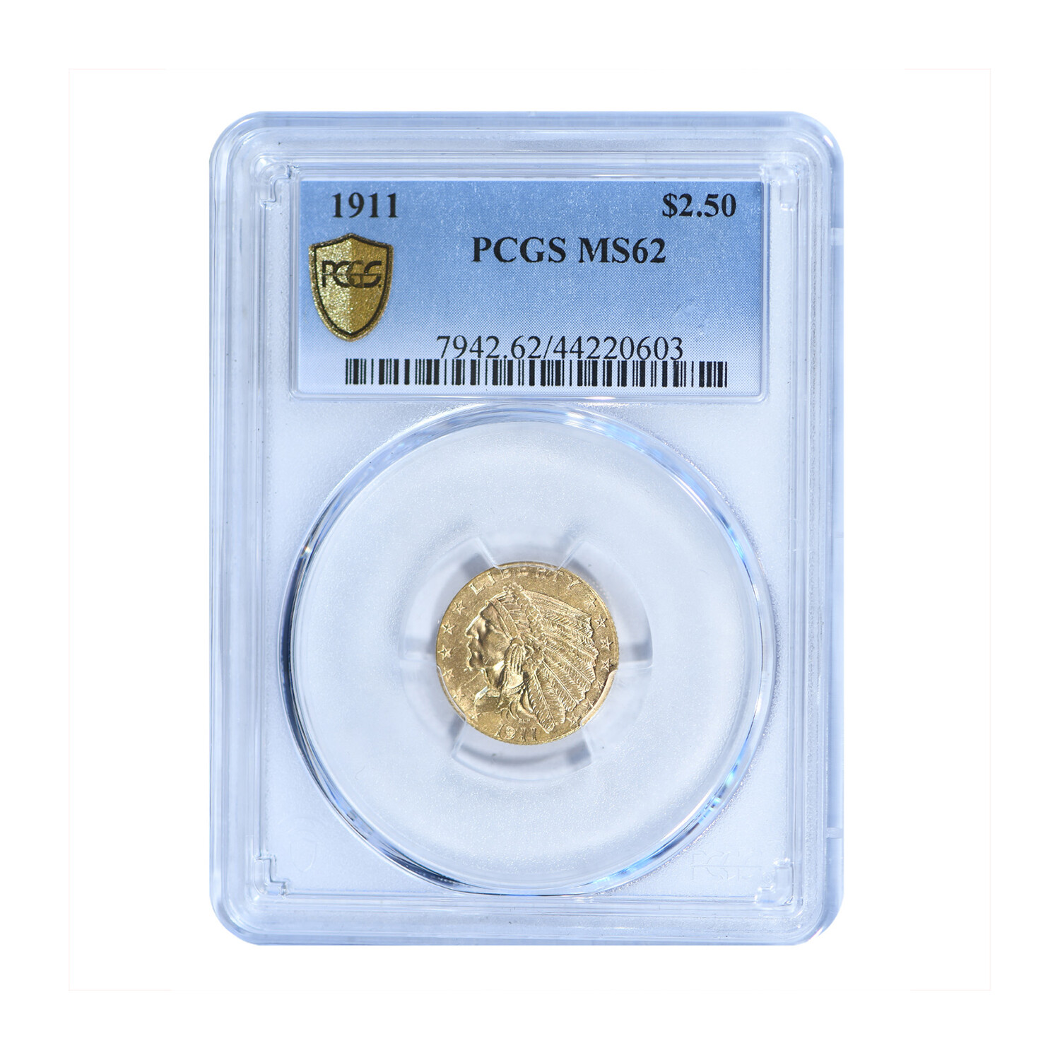 1911 $2.50 Indian Head Quarter Eagle Gold Piece // PCGS Certified MS62 // Wood Presentation Box