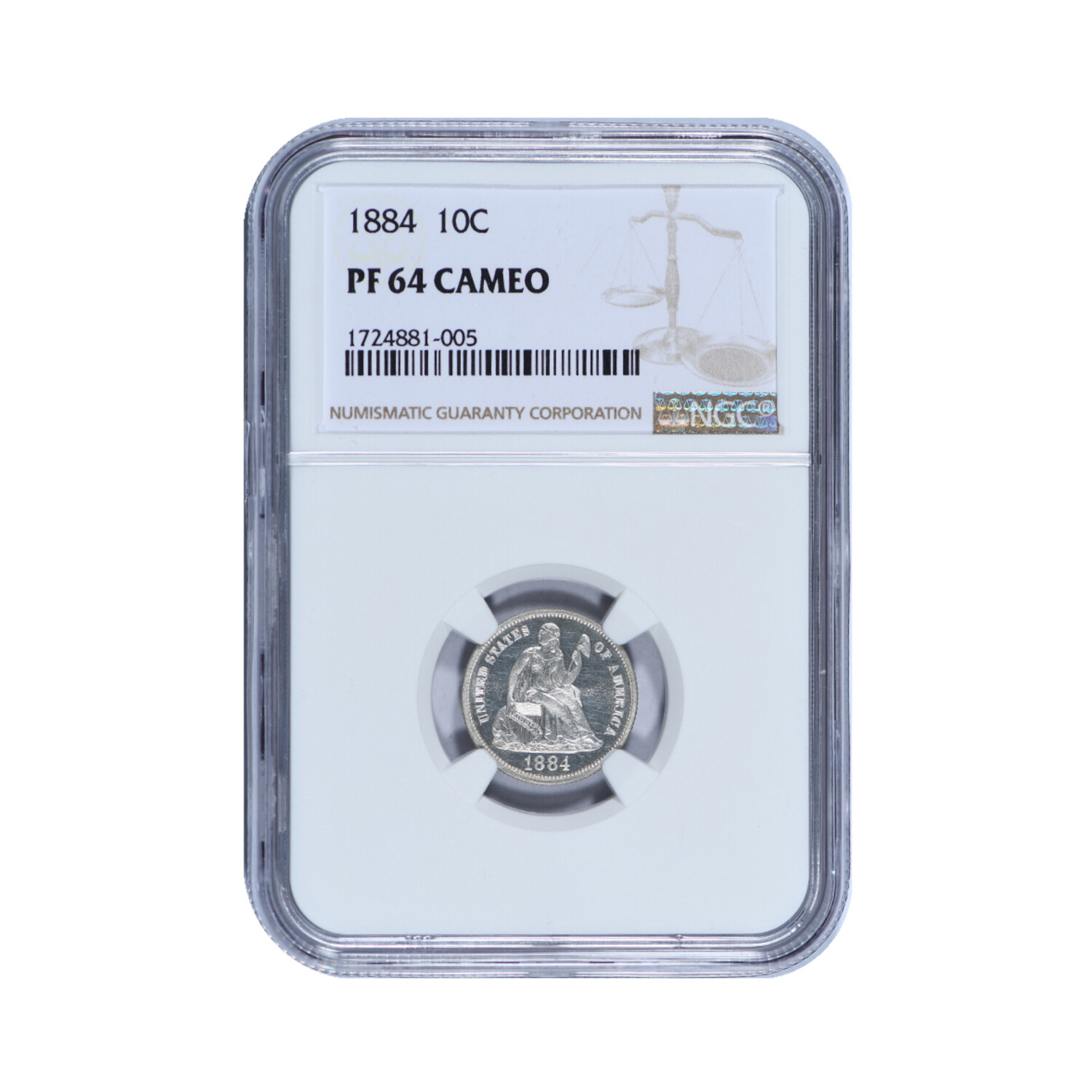 1884 Seated Liberty Dime // NGC Certified PF64 CAMEO // Deluxe Collector's Pouch