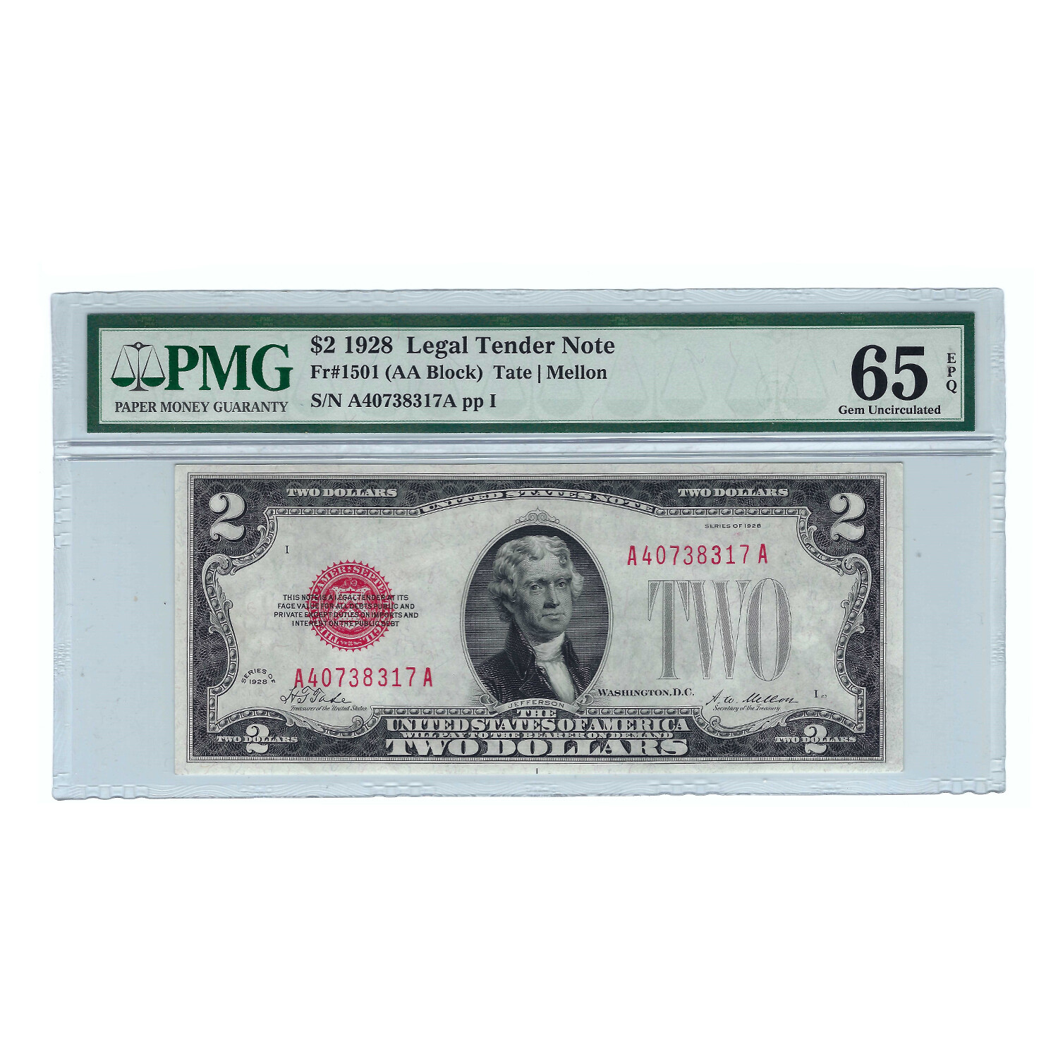 1928 $2 Small Size Legal Tender Note // PMG Certified Gem Uncirculated 65 PPQ