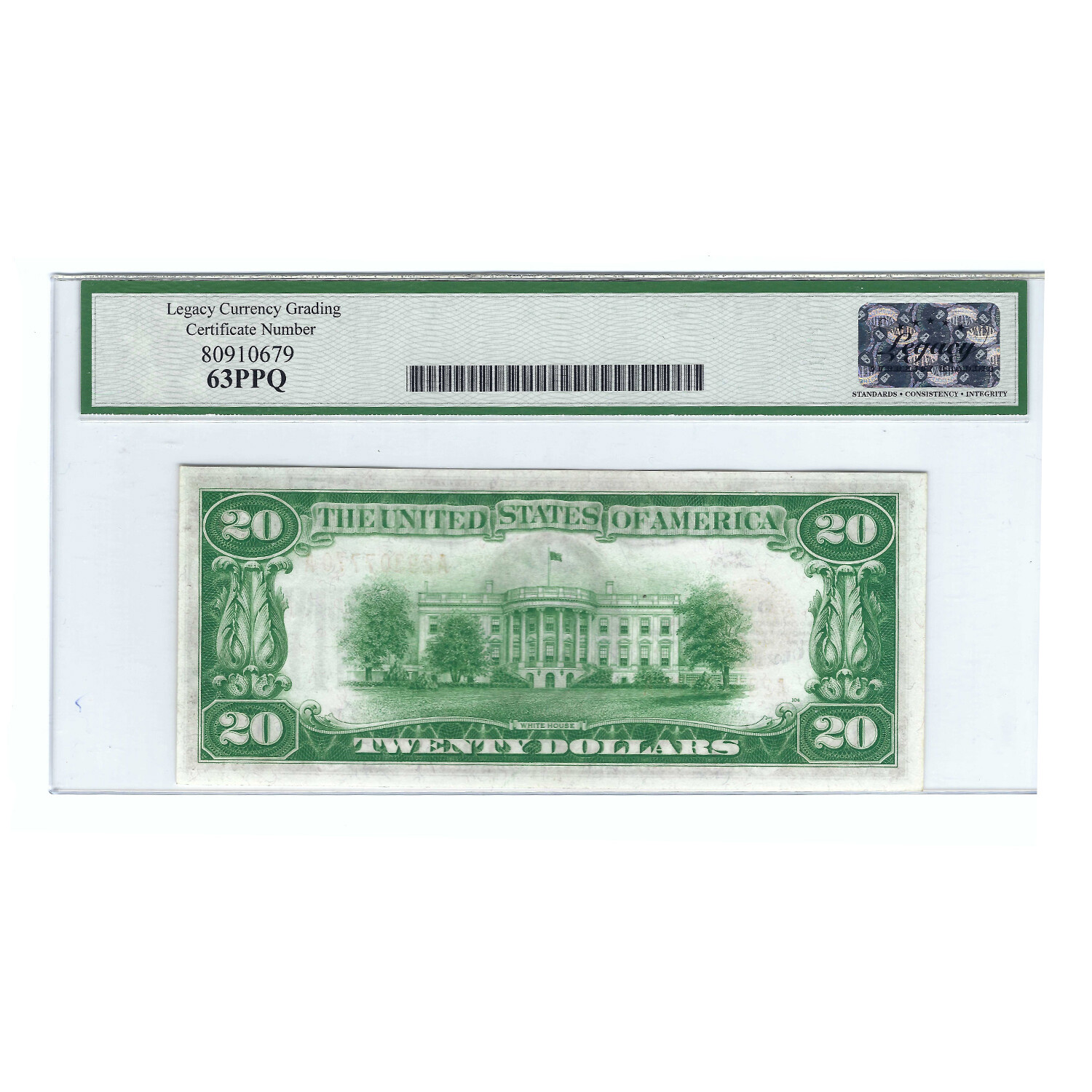 1928 $20 Small Size Gold Certificate // Legacy Certified Gem Uncirculated 63 PPQ