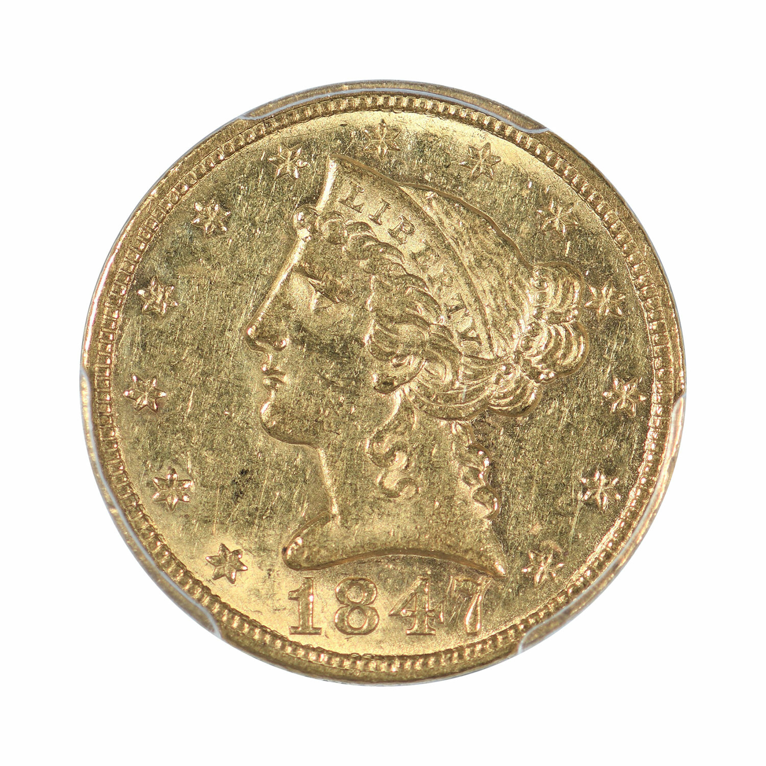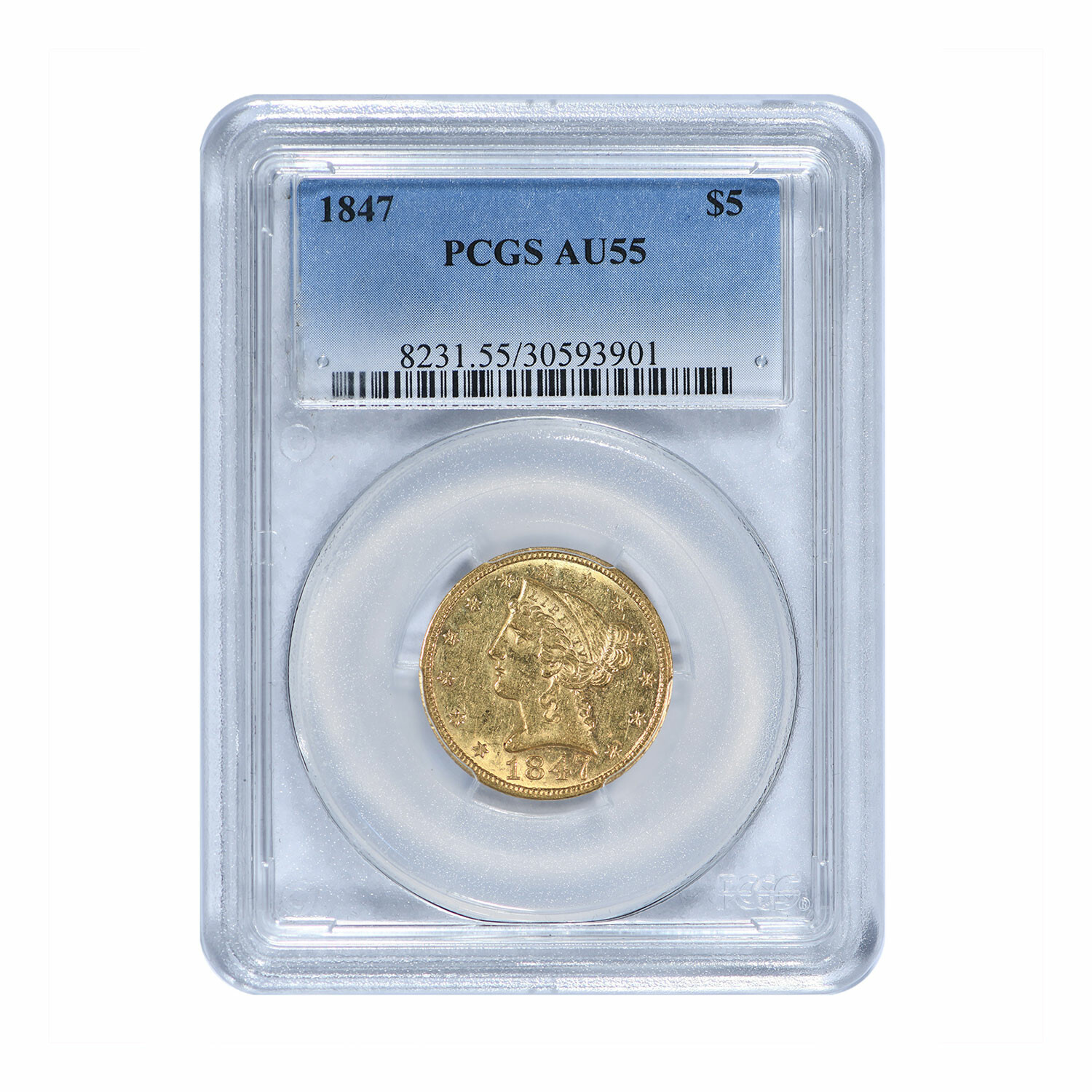1847 $5 Gold Liberty // PCGS Certified AU55 // Wood Presentation Box