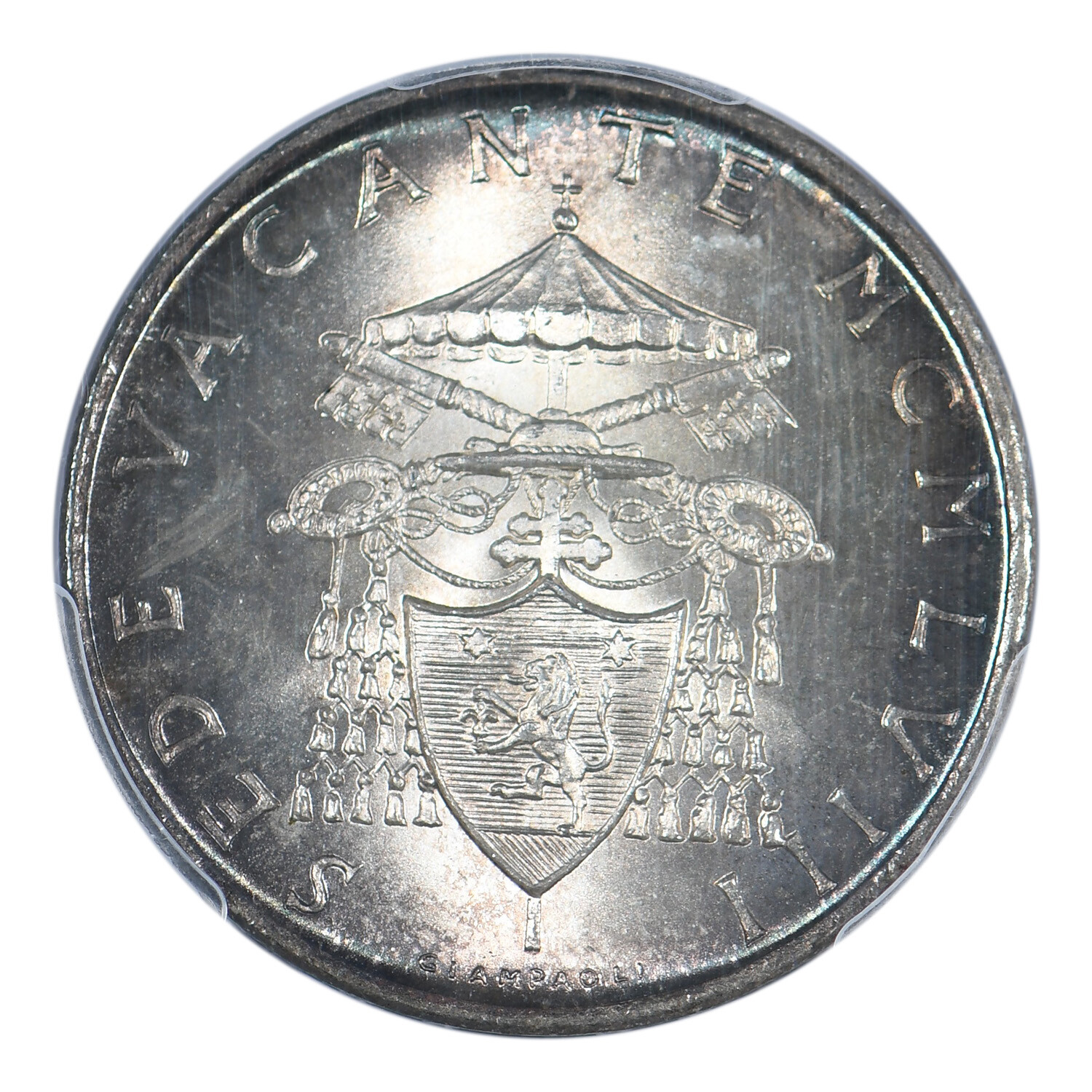 1958 500 Lire Vatican City Silver // Sede Vacante // PCGS MS67 // Deluxe Collector's Pouch