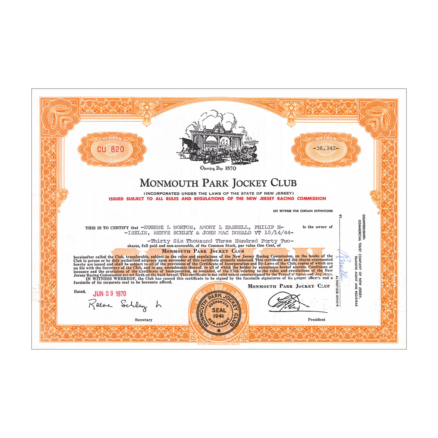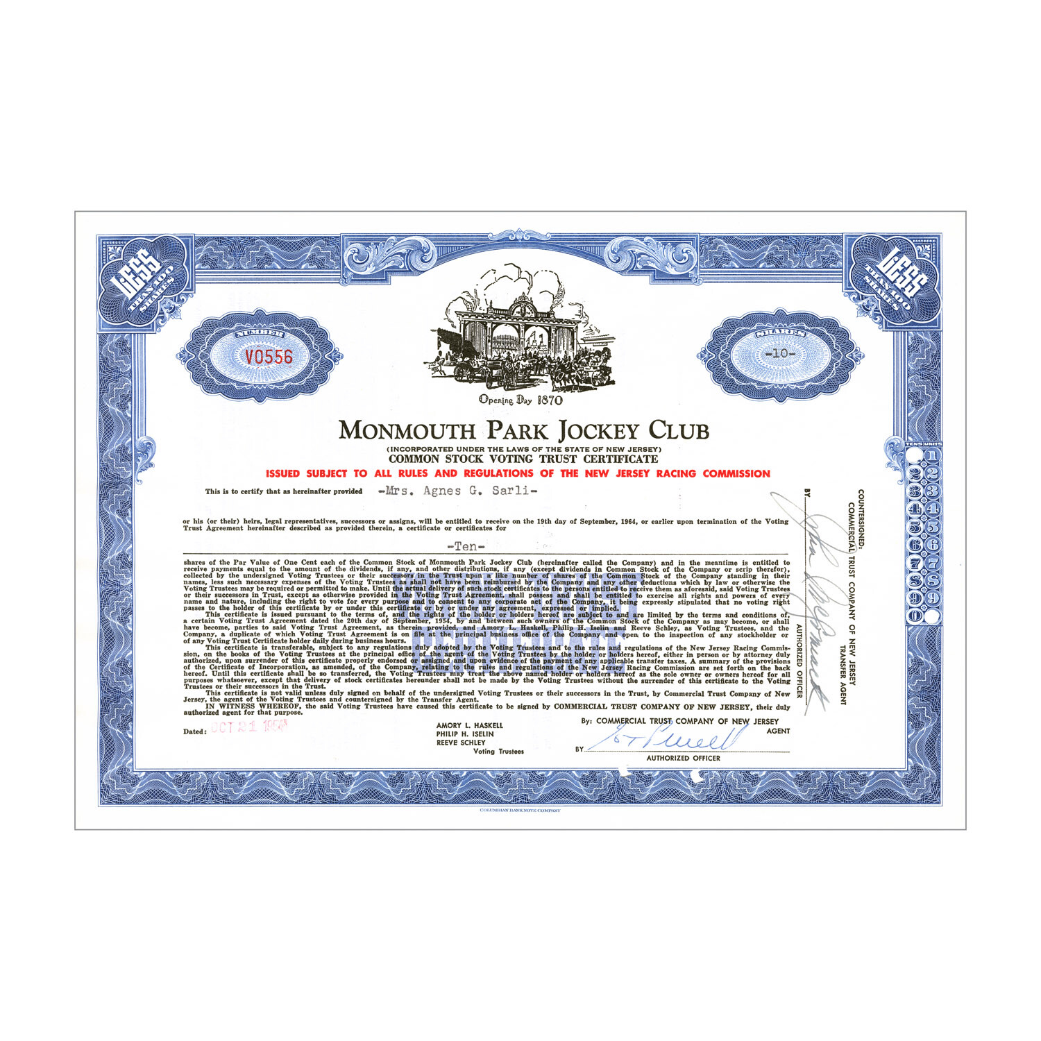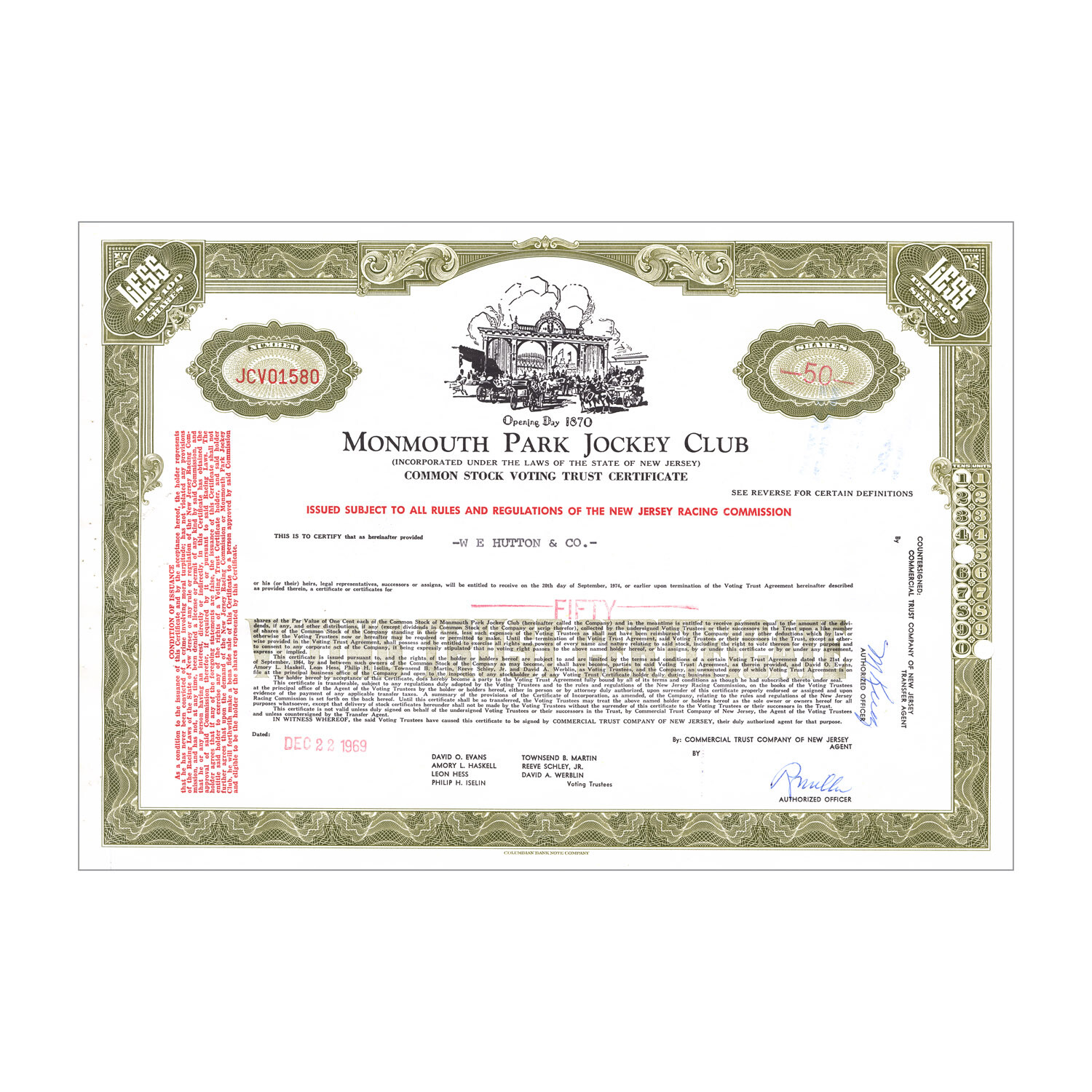Monmouth Park Jockey Club Stock // Shares Vary // 1950s - 1970s