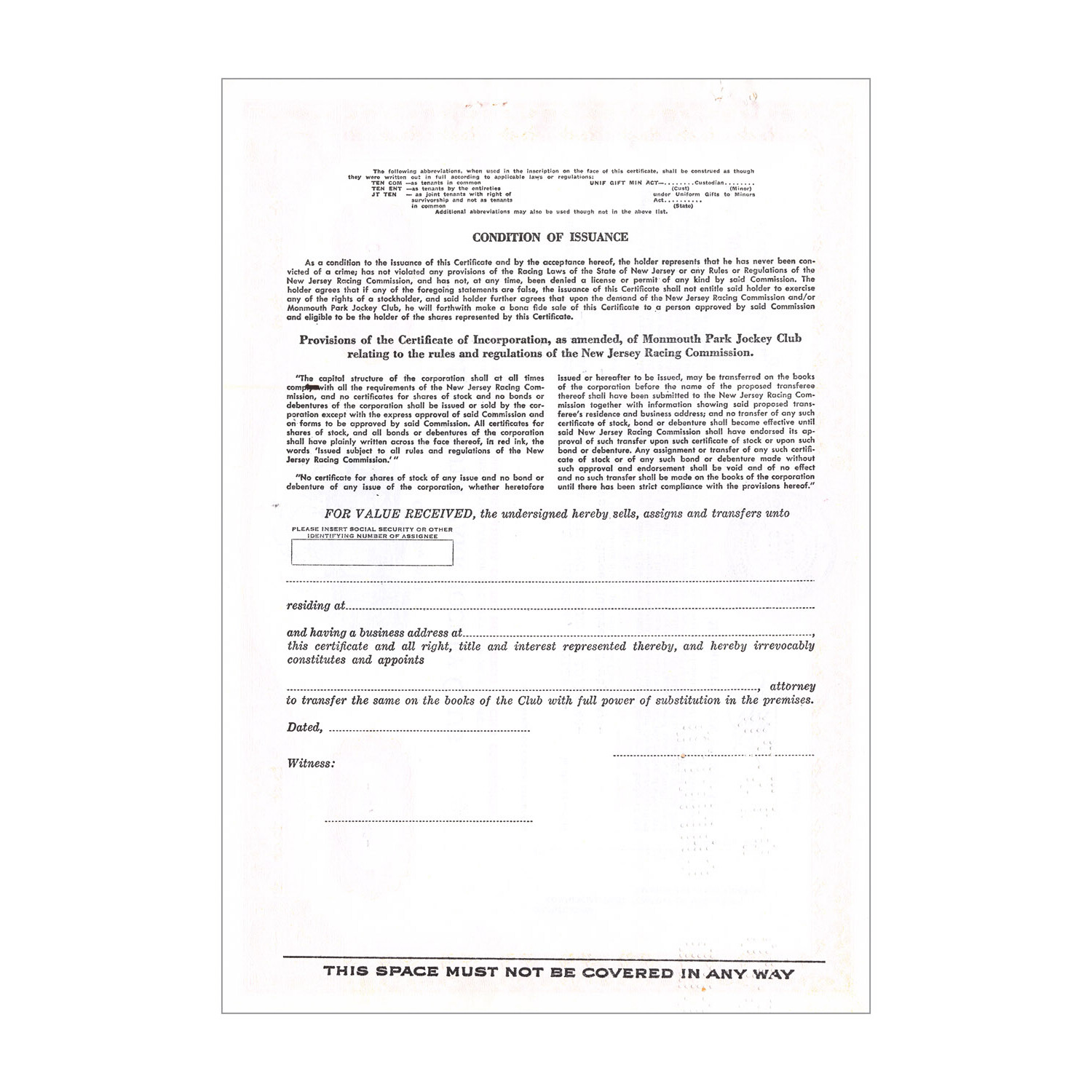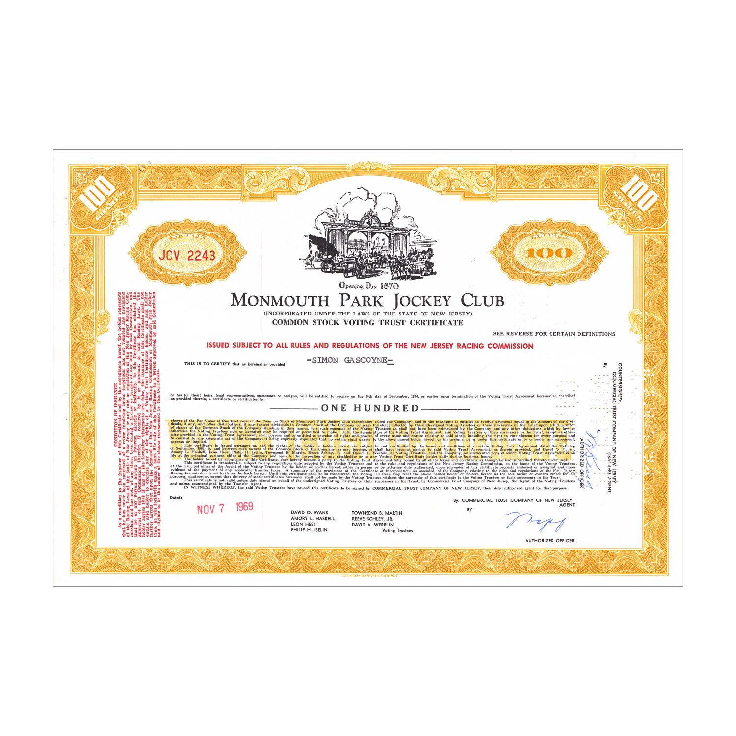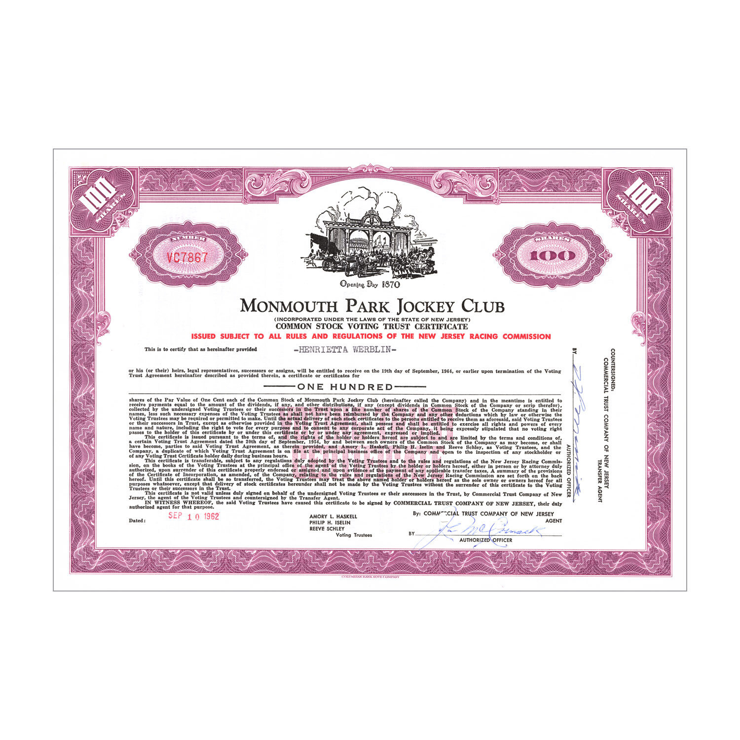 Monmouth Park Jockey Club Stock // Shares Vary // 1950s - 1970s