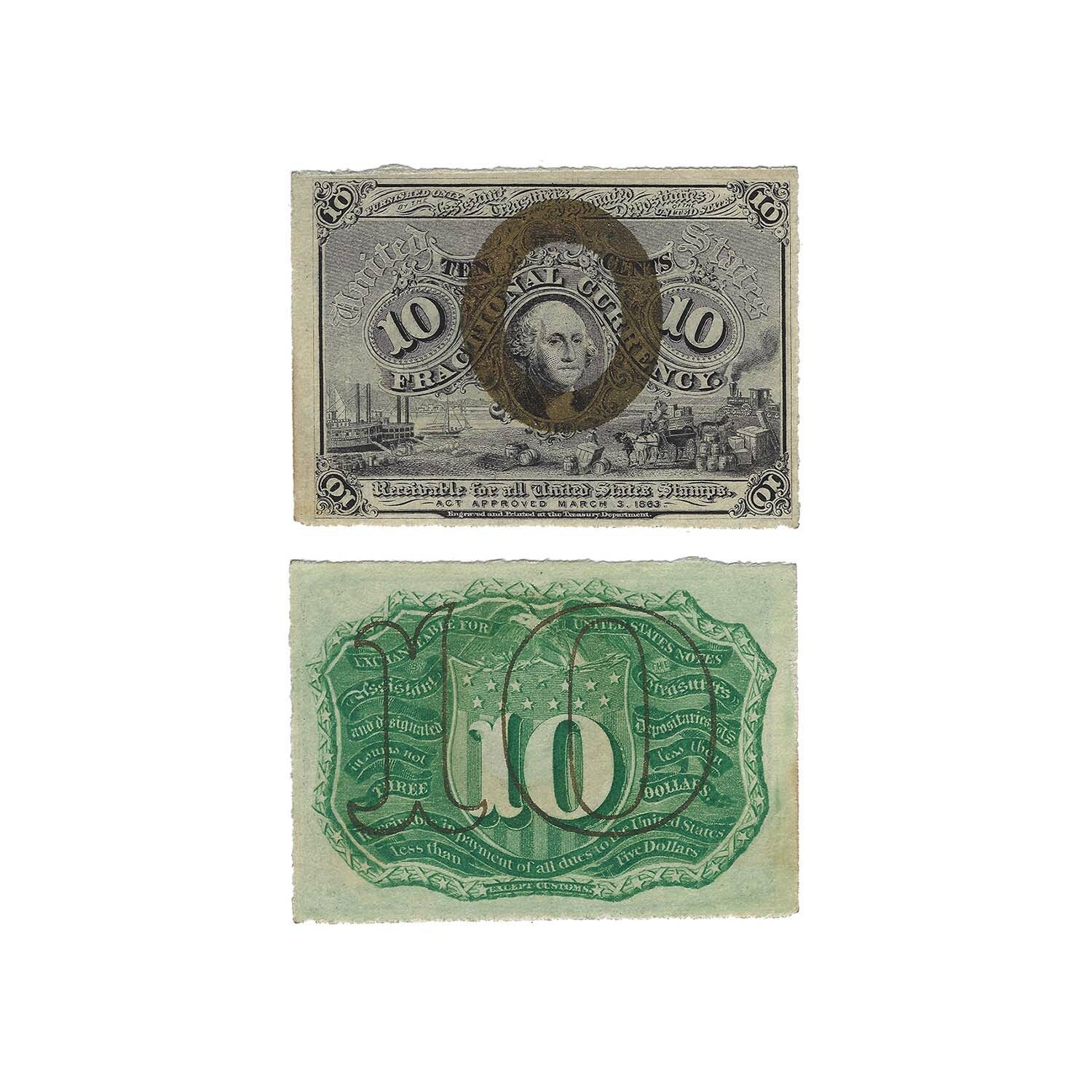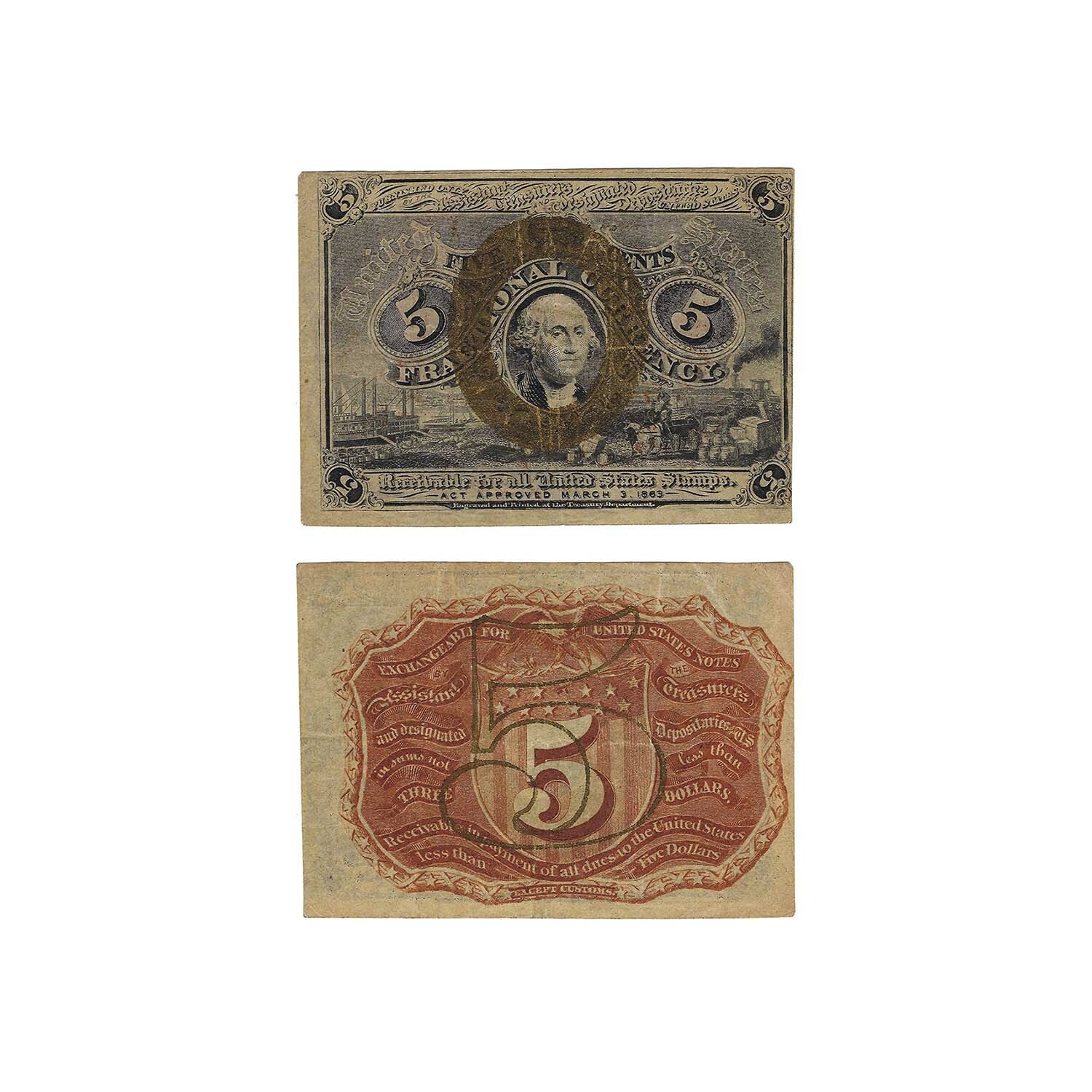 Most individuals today are highly surprised to hear of genuine U.S. paper currency with a face value of under one dollar, yet this was not always so. During the early years of the Civil War, banks suspended payments of metal coin, an act which led to a premium on all coins remaining in circulation. Coins were immediately hoarded and guarded by the public and all but disappeared from circulation. In response, the government a total of 5 issues of small currency over a 14-year period from 1862 to 1876 in denominations of 3, 5, 10, 15, 25, and 50 Cents. The later issues were known as Fractional Currency. A total of 369 million dollars of this currency was issued and it is estimated that 2 million dollars remains outstanding, most of which is presumed to have been lost or destroyed. The few notes that remain in the hands of collectors are peculiar relics of a notoriously difficult period in American financial history.