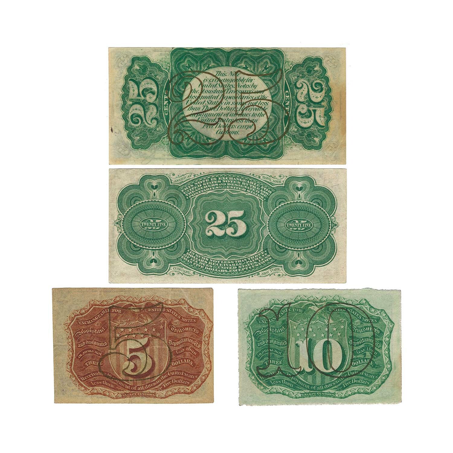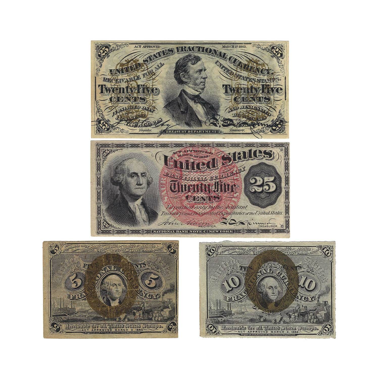 1860s to 1870s Civil War-Era Fractional Currency // 5-10-25 Cent Notes // Set of 4 // Extra Fine to Uncirculated Condition
