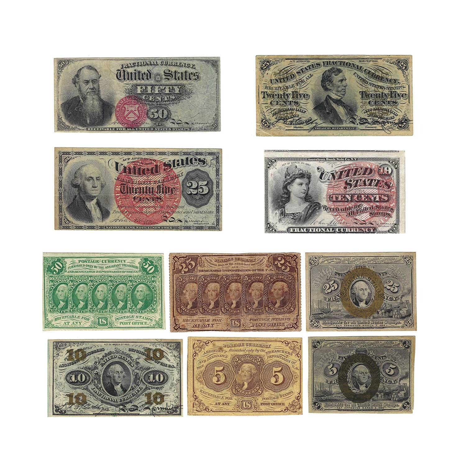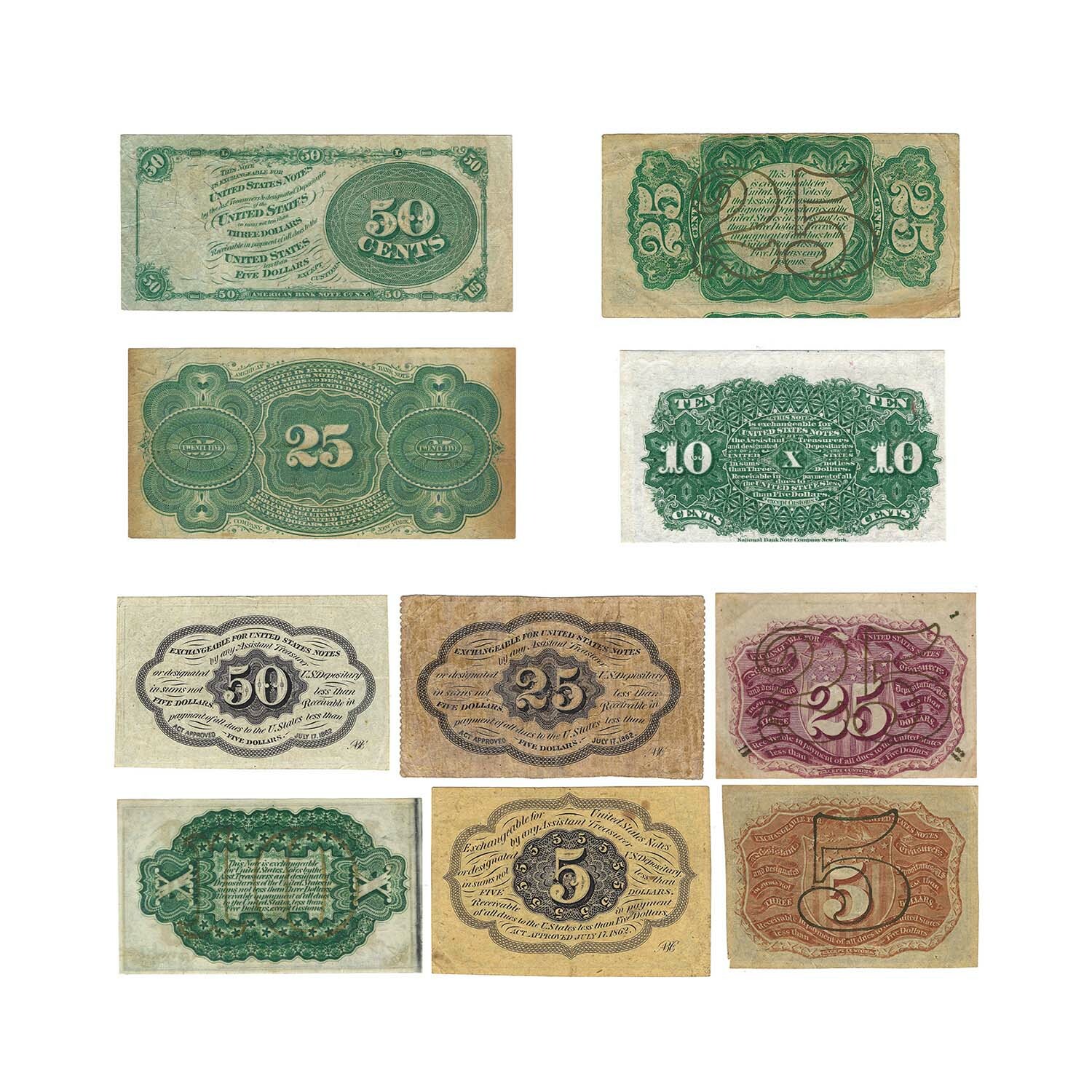 1860s to 1880s Fractional Currency // 5-10-25-50 Cent Notes // Set of 10 // Extra Fine to Uncirculated Condition