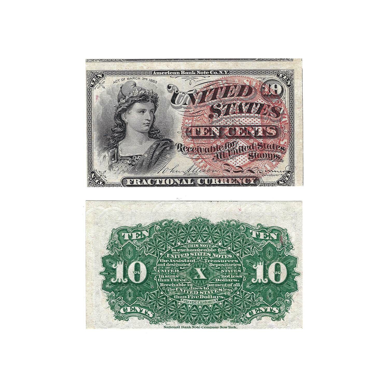 This collection includes 10 different pieces of fractional currency in extra-fine to uncirculated condition. Each note is housed in an archival-quality plastic sleeve and the set is presented in a black velvet bag with certificate of authenticity. You will receive the exact notes shown in the photos, including the following: