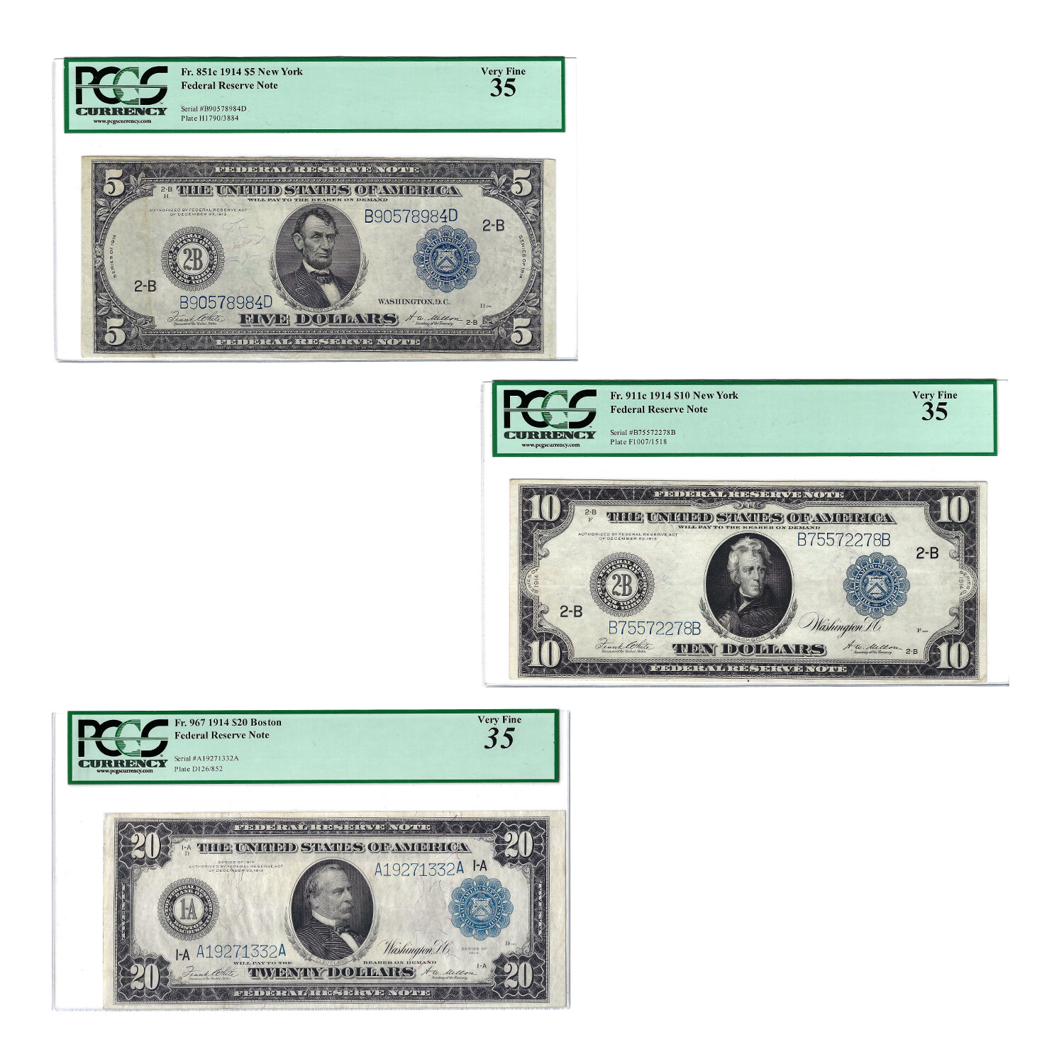 1914 Large Size Federal Reserve Note // $5, $10, $20 // Set of 3 // PCGS Certified
