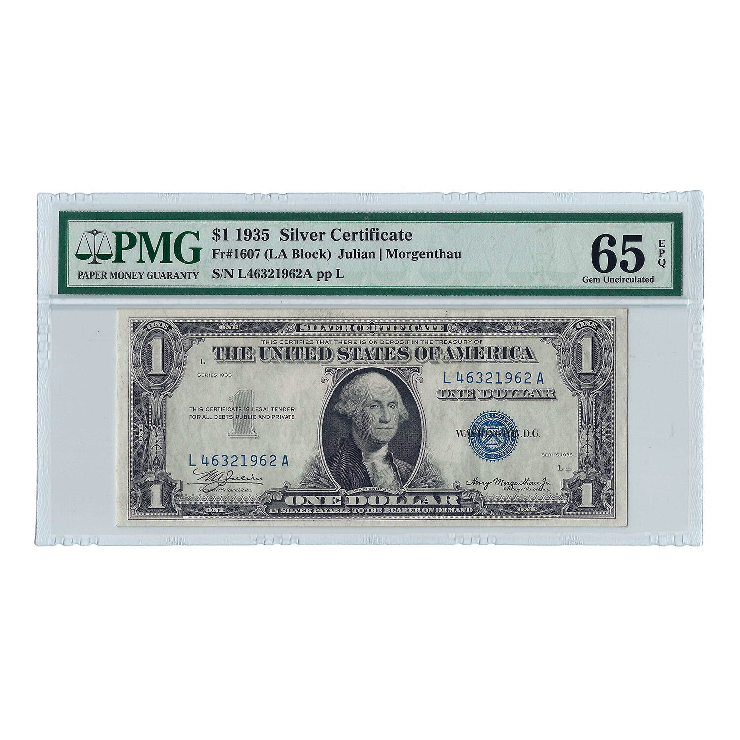 1935 $1 Small Size Silver Certificate // PMG Certified Gem Uncirculated 65 EPQ