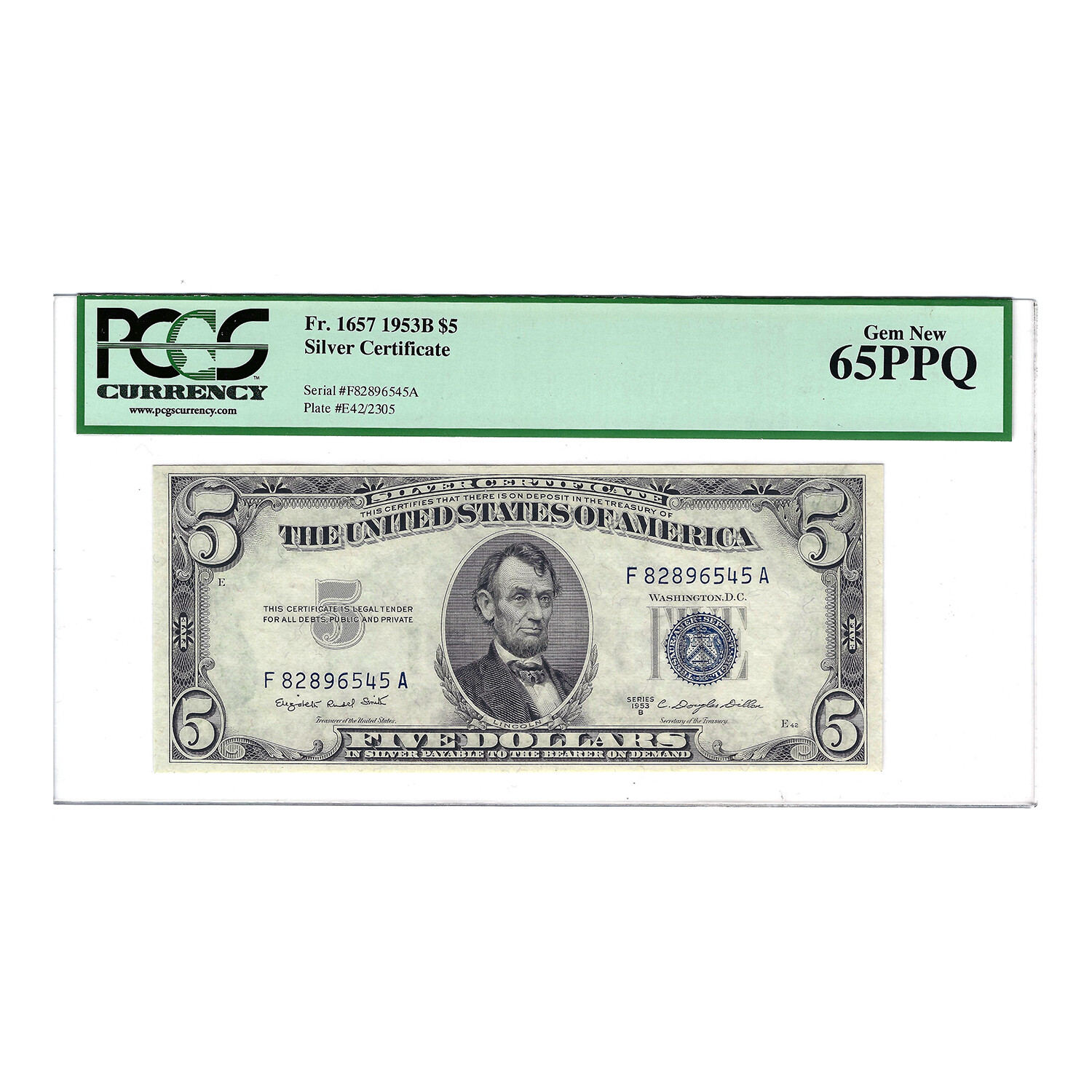 1953B $5 Small Size Silver Certificate // PCGS Certified Choice 65 PPQ