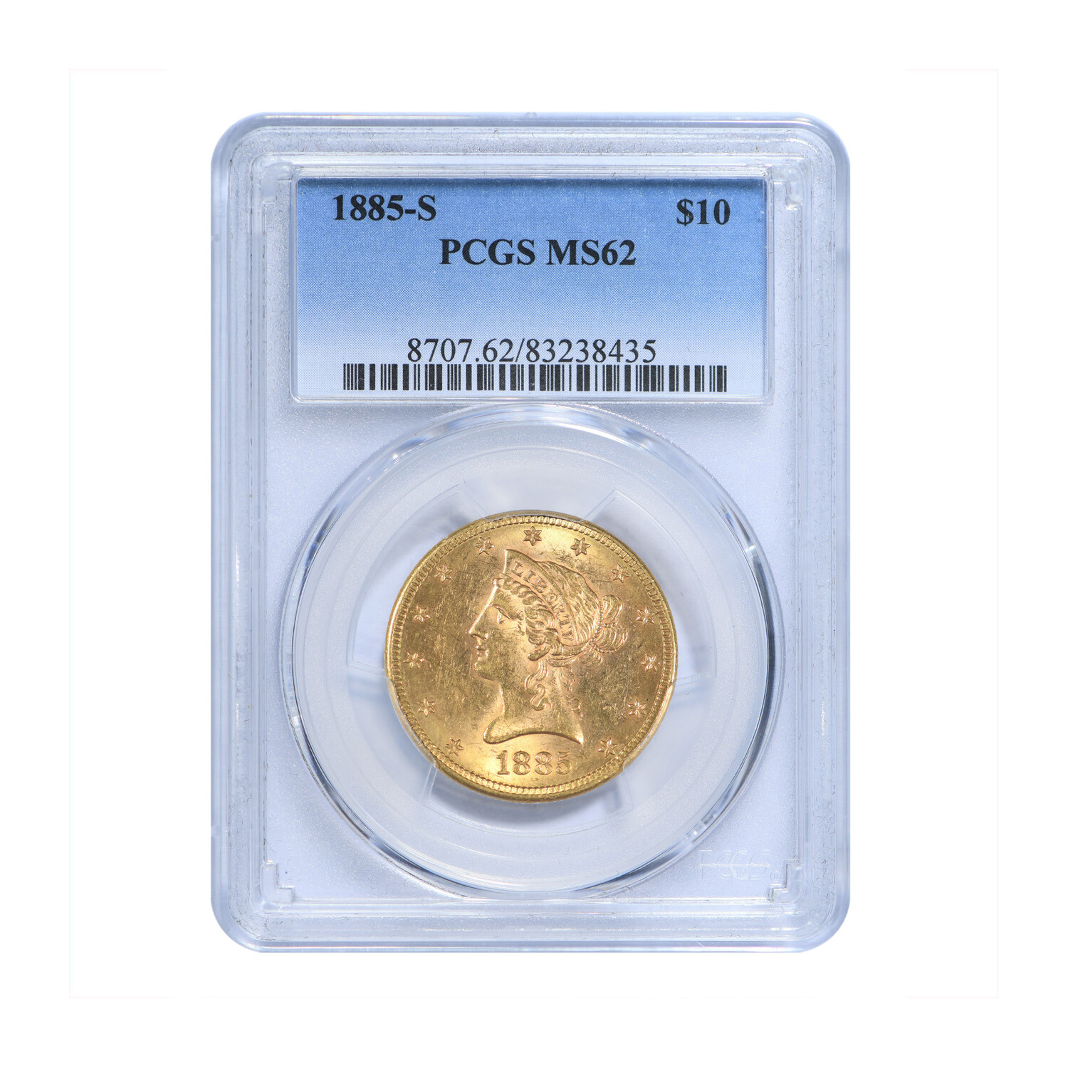 1885-S $10 Gold Liberty Eagle // PCGS Certified MS62 // Wood Presentation Box