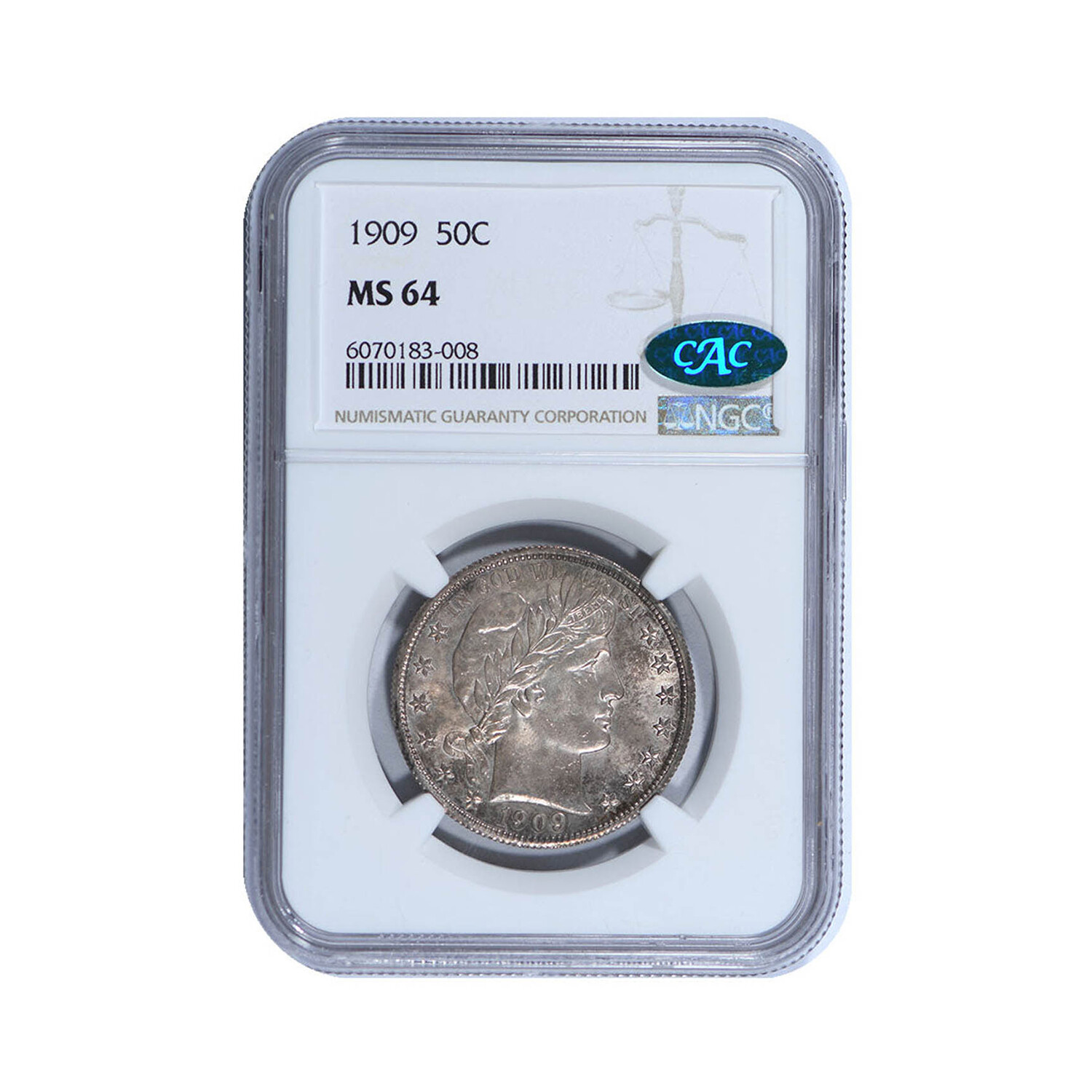 1909 Barber Silver Half Dollar // NGC & CAC Certified MS64 // Deluxe Collector's Pouch