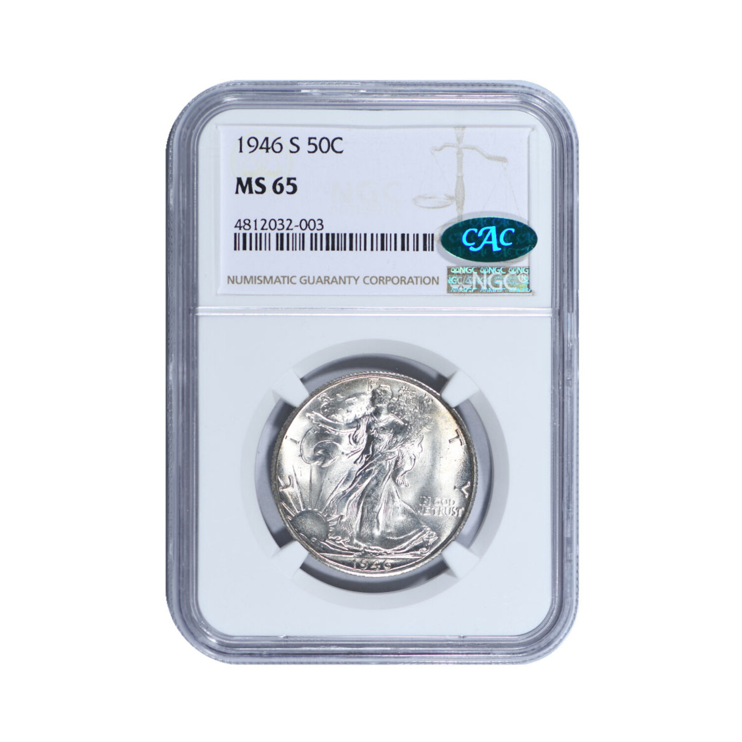 1946-S Walking Liberty Half Dollar // NGC & CAC Certified MS65 // Deluxe Collector's Pouch