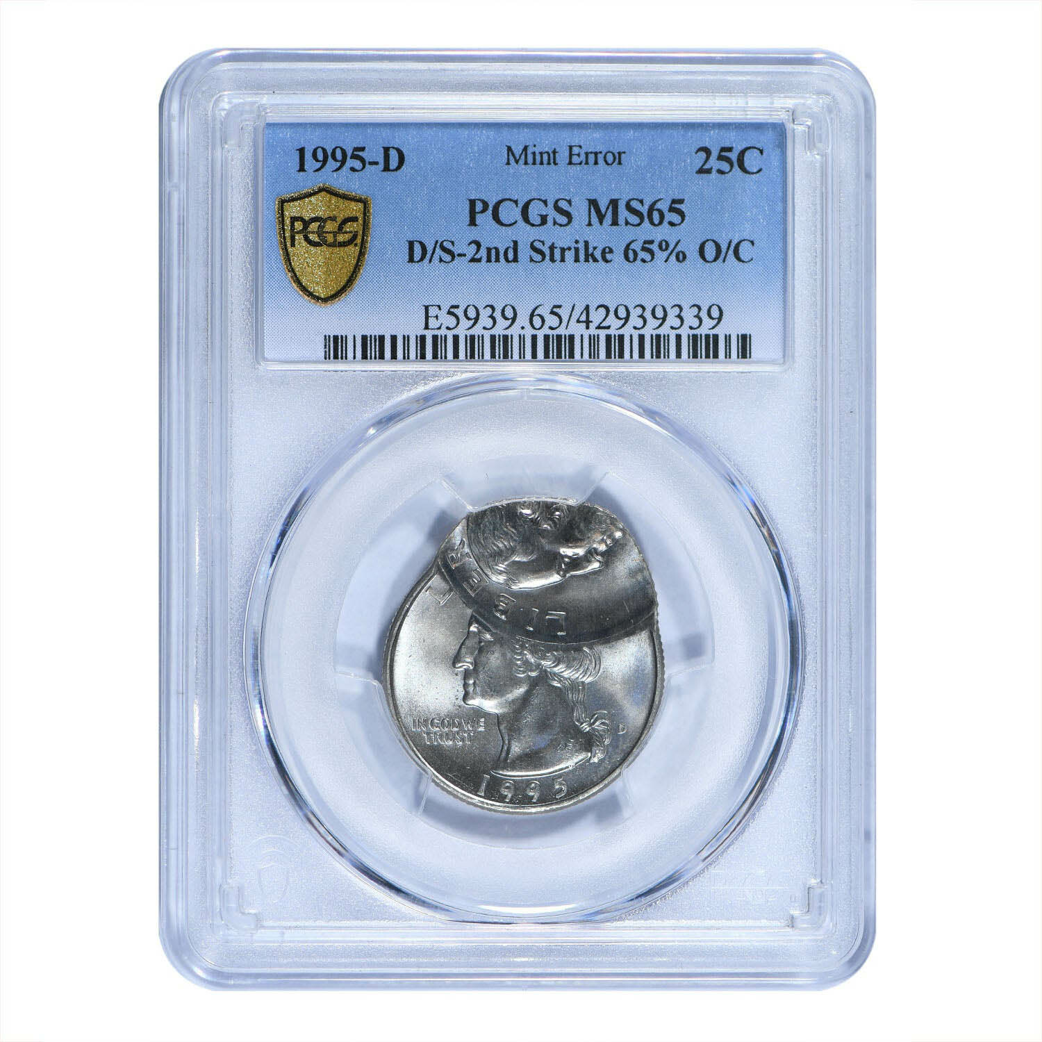 1995-D Washington Quarter Mint Error D/S-2nd Strike 65% O/C // PCGS Certified MS65 // Wood Presentation Box