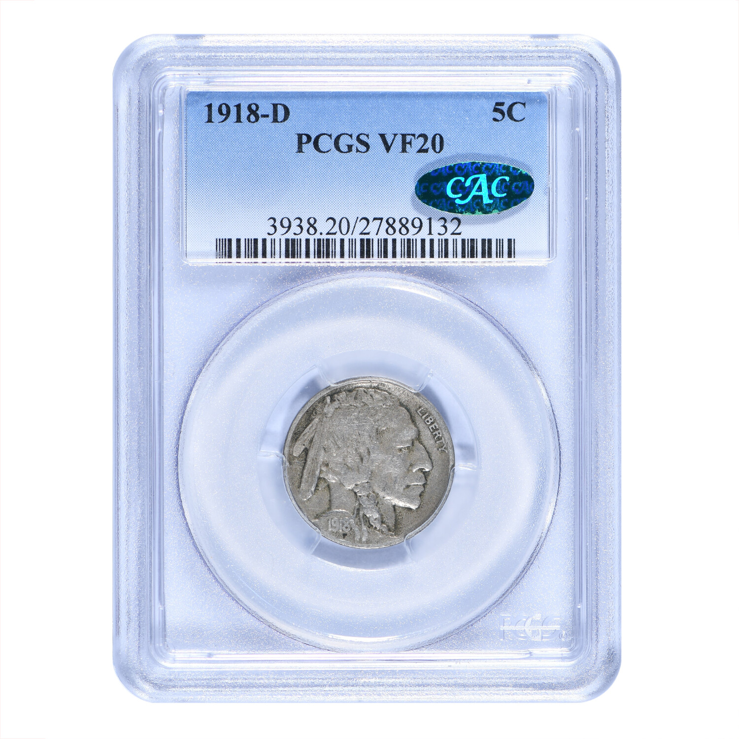1918-D Buffalo Nickel // PCGS & CAC Certified VF20 // Deluxe Collector's Pouch