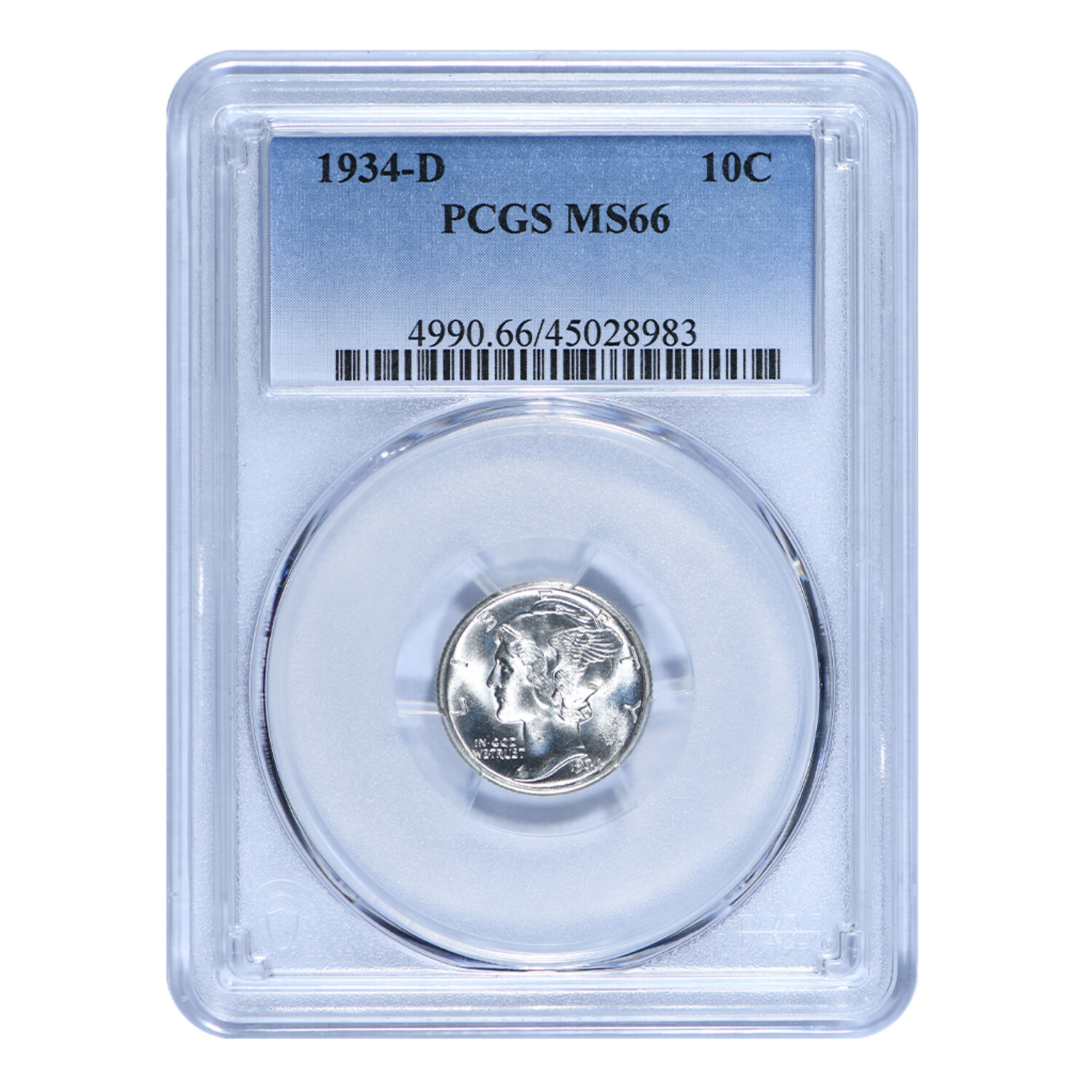 1934-D Mercury Silver Dime // PCGS Certified MS66 // Deluxe Collector's Pouch