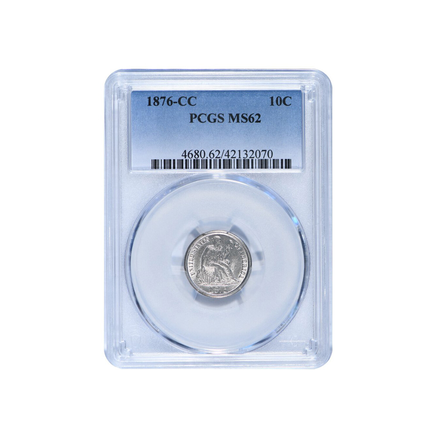 1876-CC Seated Liberty Dime // PCGS Certified MS62 // Wood Presentation Box