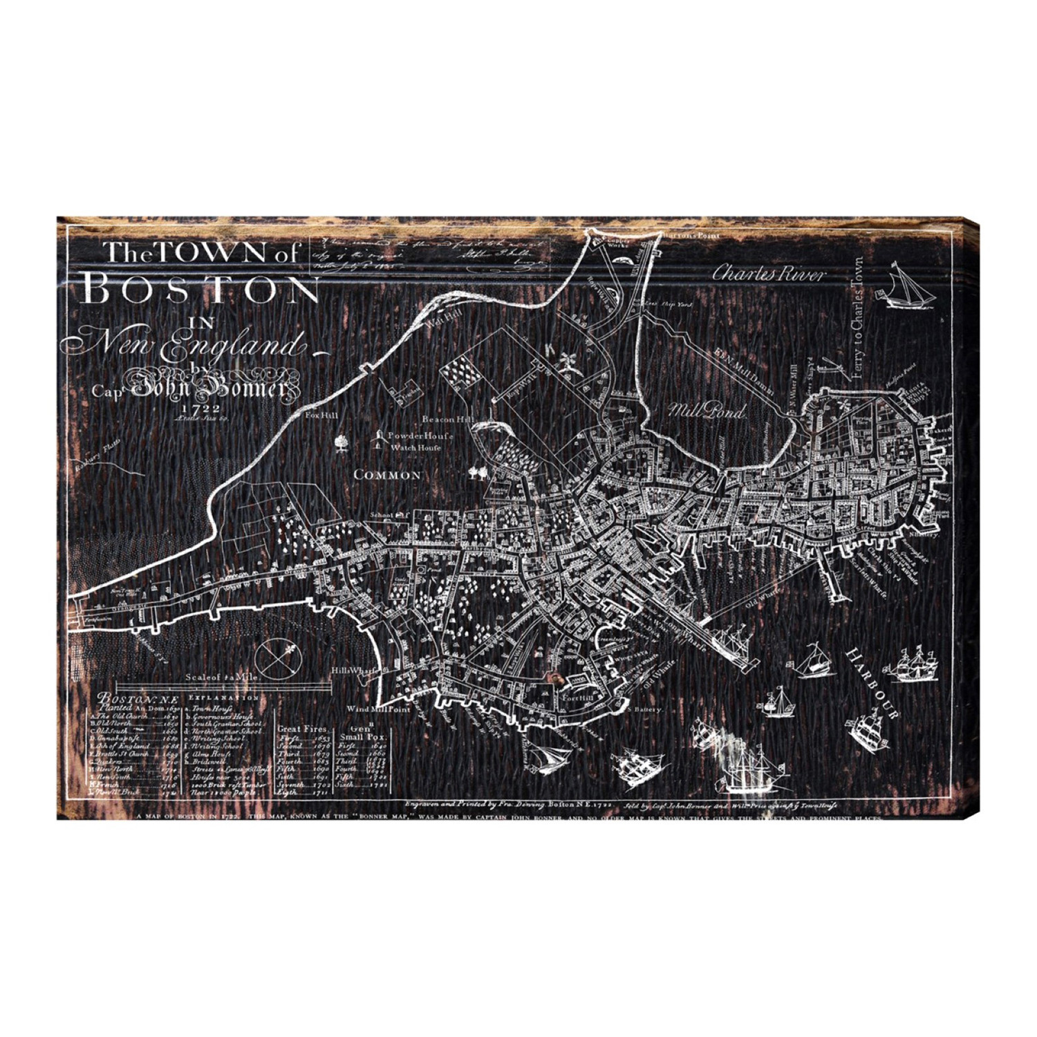 Enliven any space by hanging this exclusive re-creation of a vintage map from The Oliver Gal Artist Co. Professionally hand stretched and gallery wrapped in sustainable, FSC certified wood, this Map of the Town of Boston from 1722 arrives ready to hang, and ready to shine.