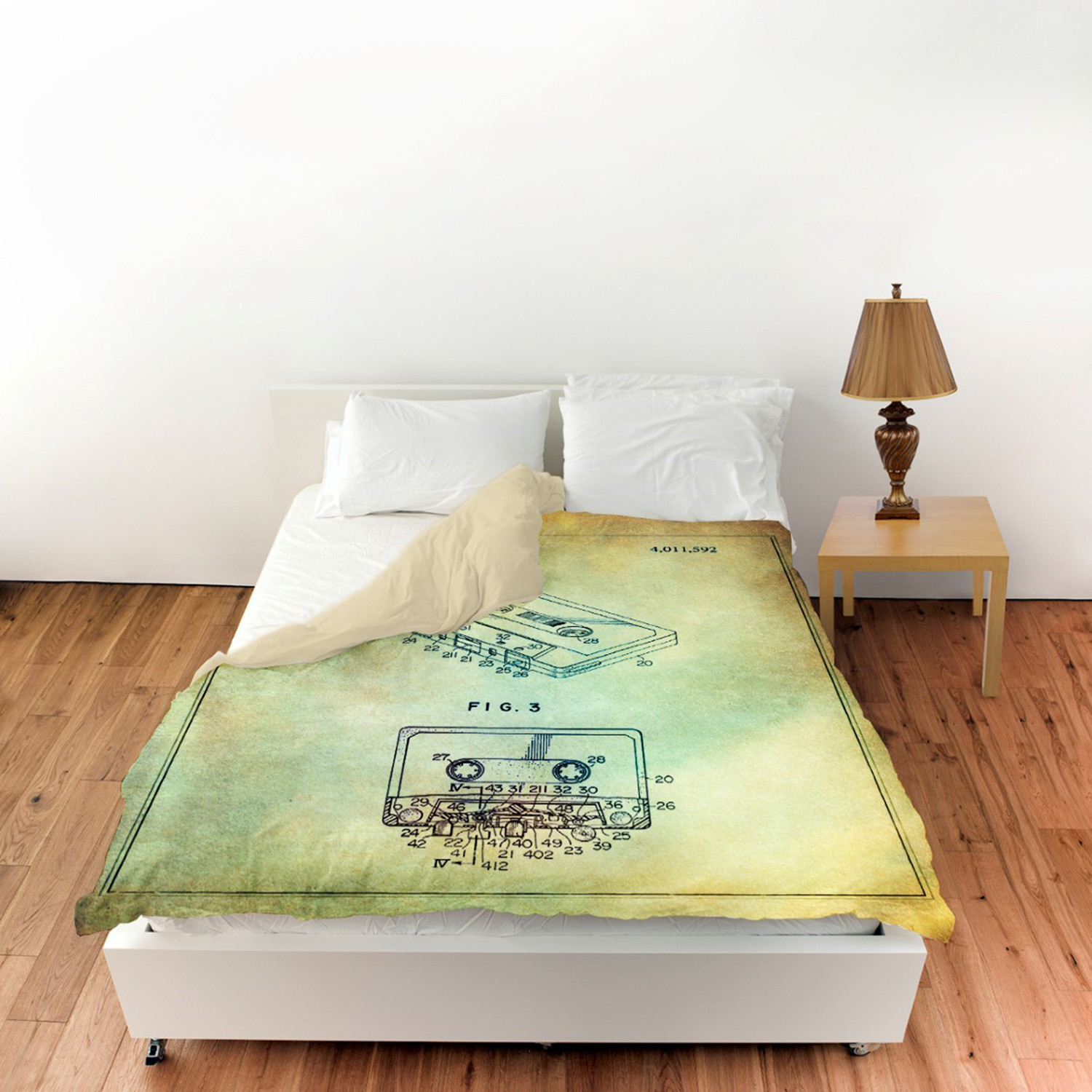 This elegant, vintage-inspired and incredibly unique duvet cover features beautiful, blueprint-style images of classic, retro objects and figures for an unmistakable detail to bring innovative flair to your home.