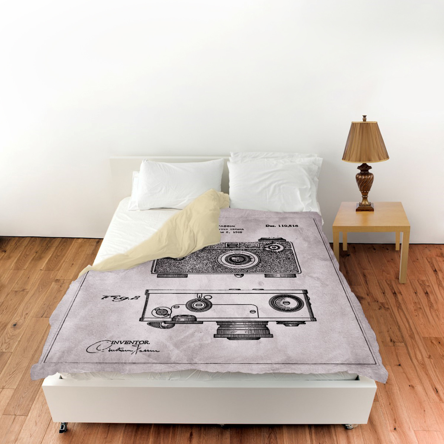This elegant, vintage-inspired and incredibly unique duvet cover features beautiful, blueprint-style images of classic, retro objects and figures for an unmistakable detail to bring innovative flair to your home.